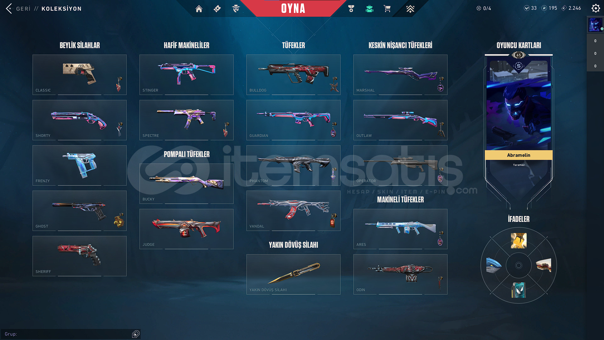 ✨ Hesap Özellikleri:🔸 Rank: Altın 1 (TR Sunucusu)🔸 Ban: Yok🔸 Battle Pass: 2 adet🔸 Skinler:🗡️ Champions 2025 Bıçak🔥 Champions Vandal⚡ Helezon Phantom💥 Gaina Vandal💎 Koleksiyon özenle düzenlenmiş, hesabın hiçbir yasa dışı geçmişi yok.