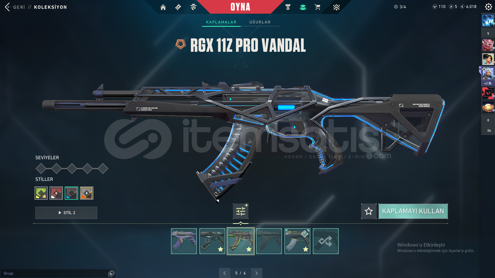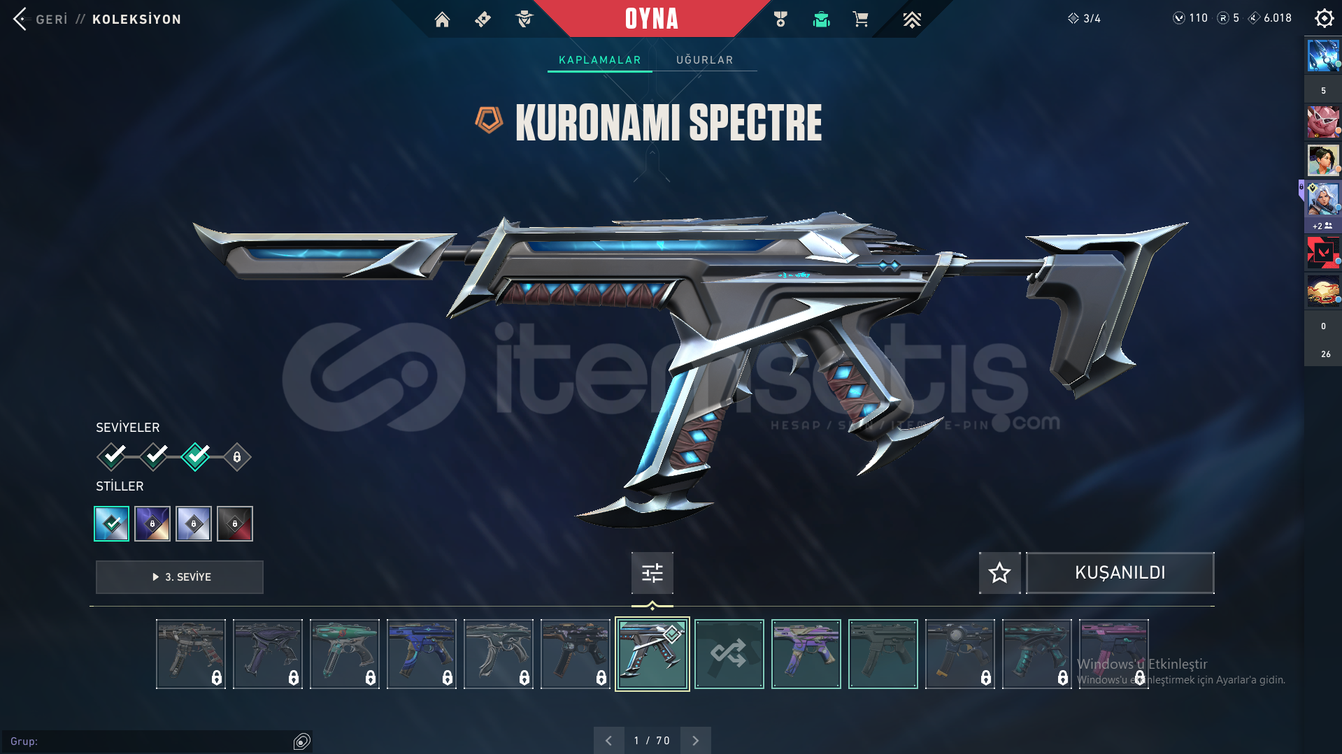 Hesapta Champions Seti, RGX Vandal, Kuronomi Spectre ve çok daha fazlası bulunmaktadır.