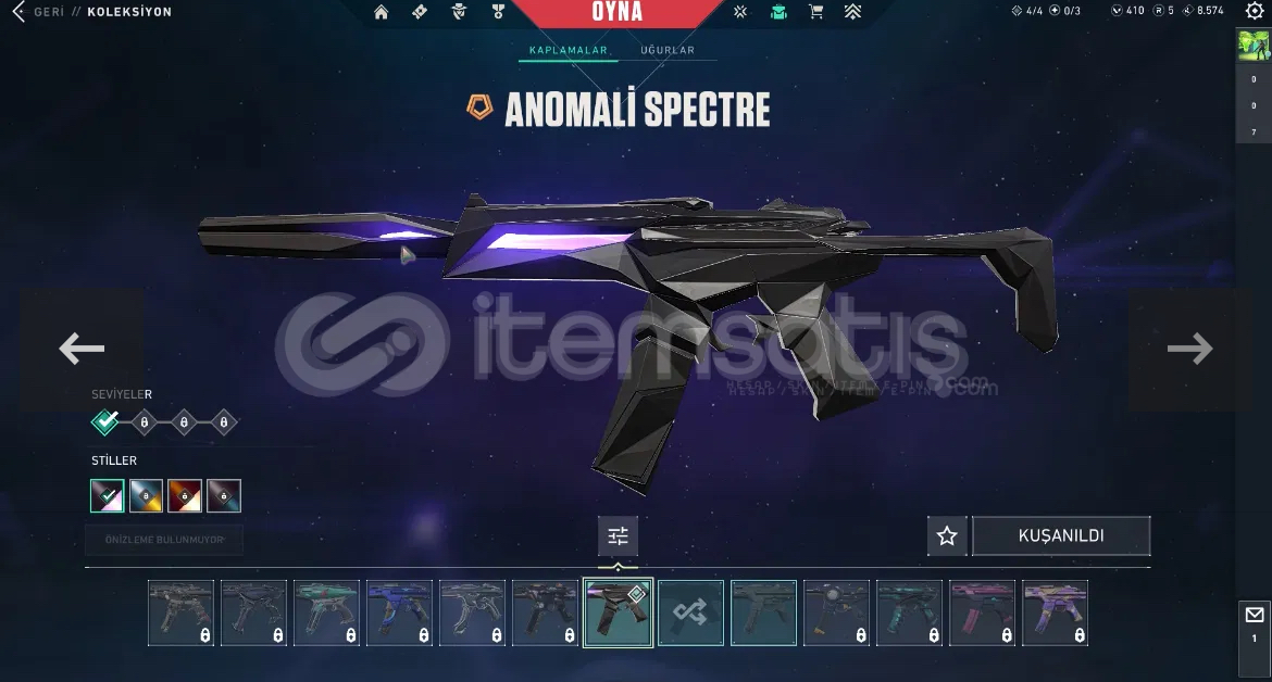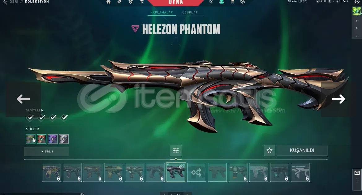 Hesapta en yeni ve nadir Champions 2025 Seti mevcuttur. Ayrıca çok sevilen Yağmacı (Reaver) Vandal, Anomali Spectre ve Helezon (Spline) Phantom gibi popüler silah kaplamaları bulunuyor.