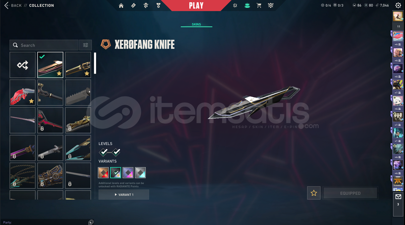Hesaptaki Skinler;VandallarFelaketin Kalbi VandalChampions 2025 VandalRGX VandalKaos VandalMaymun VandalUlupençe VandalPhantomlarProtokol PhantomAsil PhantomBıçaklarGaia’nın GazabıUlupençe BıçakChampions 2025 BıçakTekli SkinlerUlupençe GhostYağmacı SheriffMaymun OperatorHesabın rankı Diamond 3’tür.119 Leveldir.