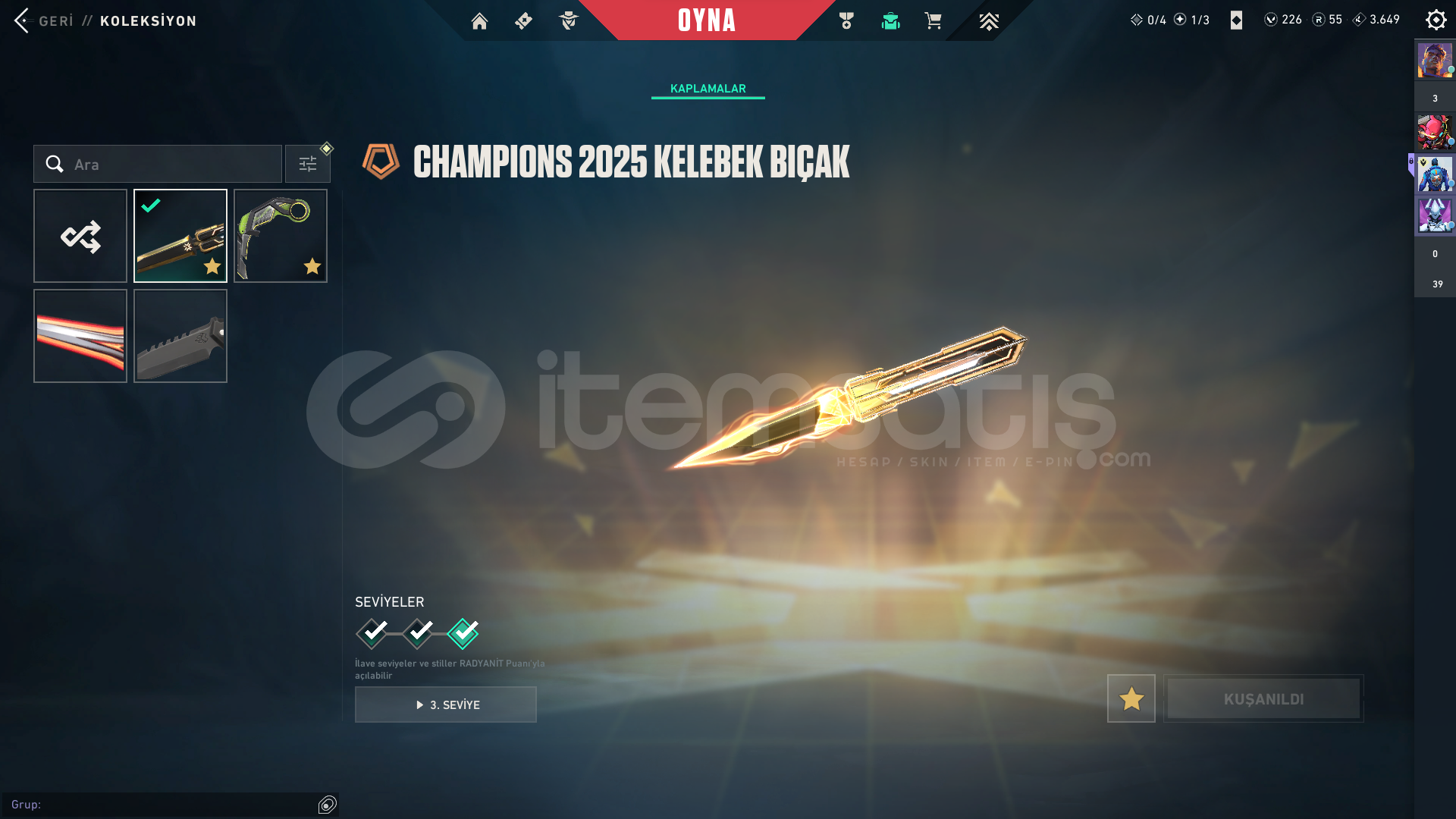 5 DAKİKADA TESLİMATHESAP İÇERİĞİ;-fatih ghost-kaosun başlangıcı sheriff-oni phantom-champions 2025 vandal-yıldız belası vandal-yitik operator-champions 2025 kelebek-rgx karambit-savaş biletiMAİL;-var kendi mailinize devredilecekRANK;-altın 1SERVER;-tr