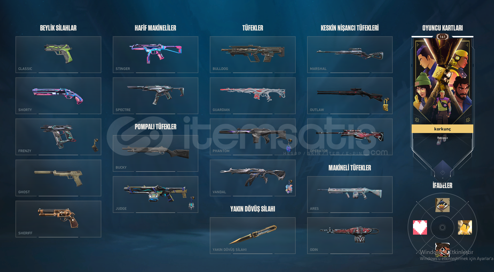 --> BIÇAKLARCHAMPİONS KELEBEKASİL KARABİT-->VANDALLARFELAKETİN KALBİ VANDALCHAMPİONS 2025 VANDALONI VANDALSİHİRPUNK VANDALYAĞMACI VANDALYİTİK VANDALASİL VANDAL-->PHANTOMAMOMALİ PHANTOM KAOS PHANTOM-->SERİFFSİHİRPUNK SERİFF YAĞMACI SERİFF-->GERİYE KALAN SKİNLER ÖZEL HAREKAT GHOST GAIA GUARDİANYILDIZ BELASI OUTLAWRGX CLASSİCHESAPTA 3 SEZON BATTLE PASS AÇILMIŞ H...