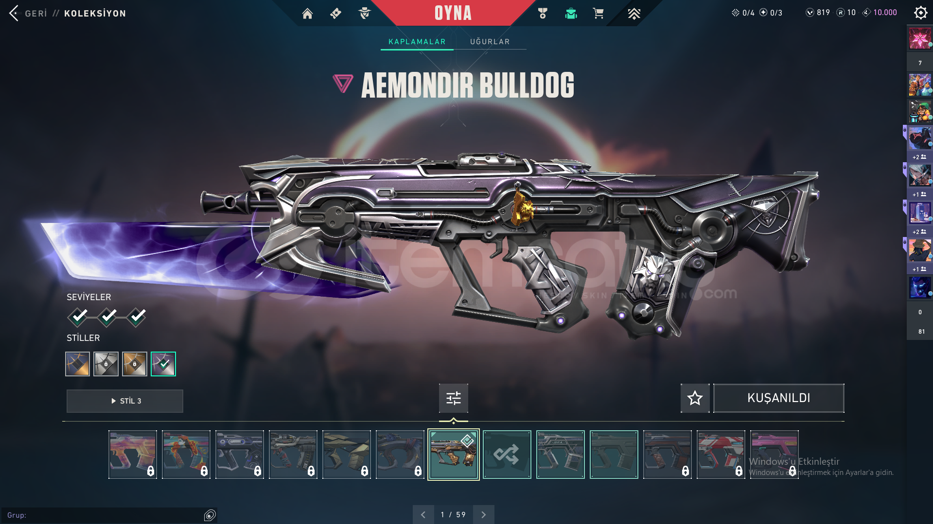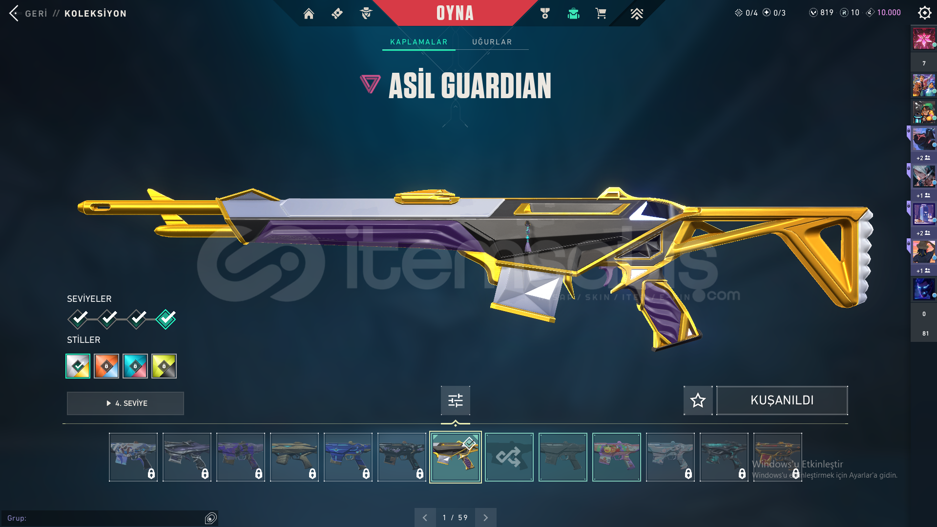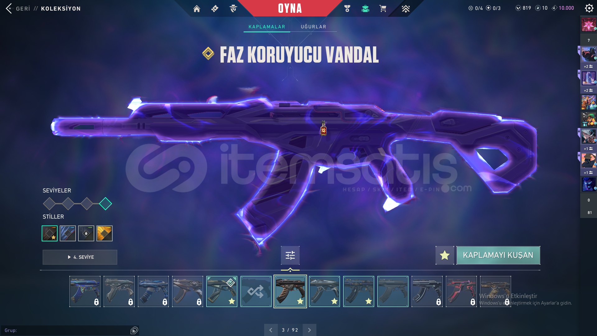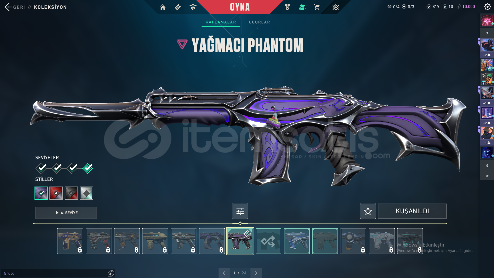 Hesapta bolca skin mevcuttur. Yaklaşık 1000vp daha vardır hesapta.Skinler,-2025 Champions Vandal-Faz Korucu Vandal-Kaos Vandal-Işık Muhafızı Vandal-Yağmacı Phantom-Yağmacı Spectre-Asil Guardian-Aemondor Buldogg-Aeomondor Sheriff-Shirpunk Ghost-Sır Çiçeği Operatör -2025 Champions Kelebek-2025 Vct Karambit