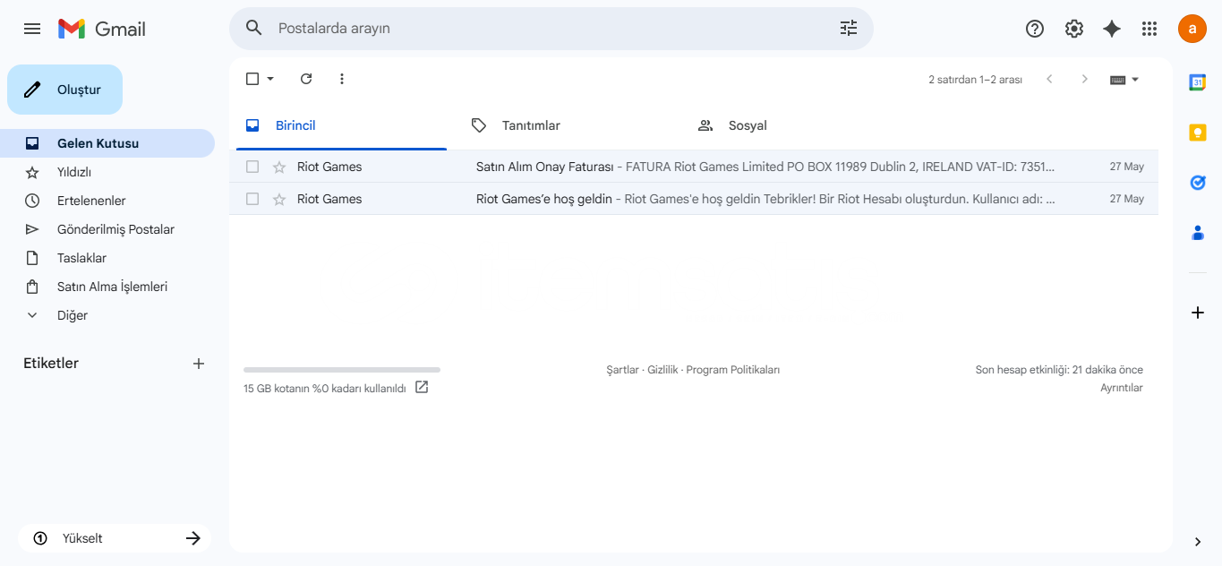 • Bu hesabın İlk Mail adresi vardır ve teslim edilecektir.