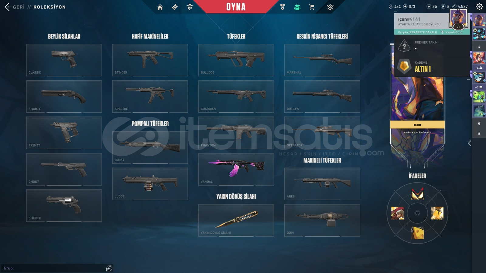 -hesabın seviyesi 25-hesapta bulunan skinler:*champions vandal*champions kelebek*dolmirin intikamı vandal-hesap gayet uygun fiyattadır.-alana hayırlı olsun.