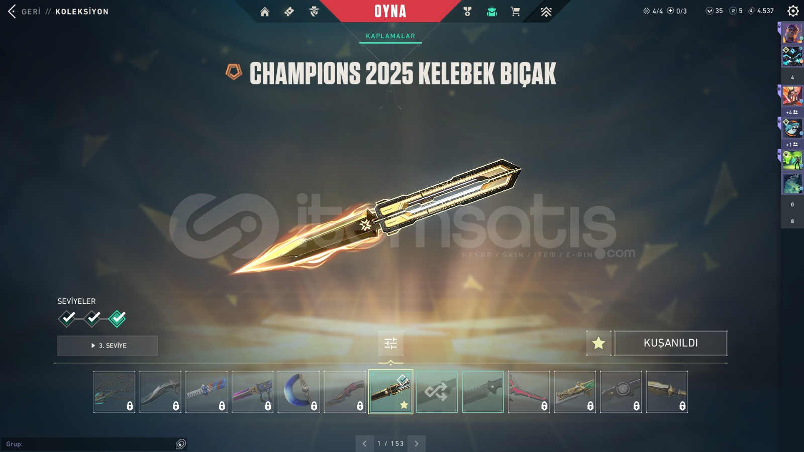 -hesapta bulunan skinler: