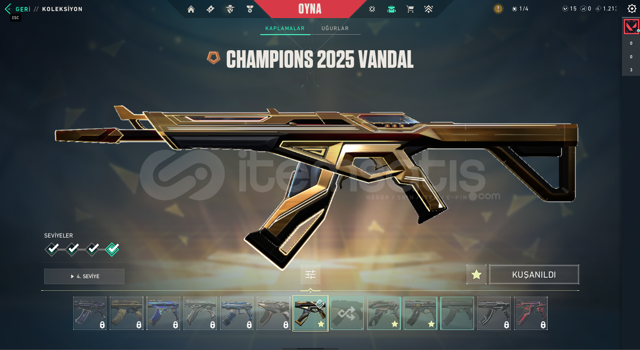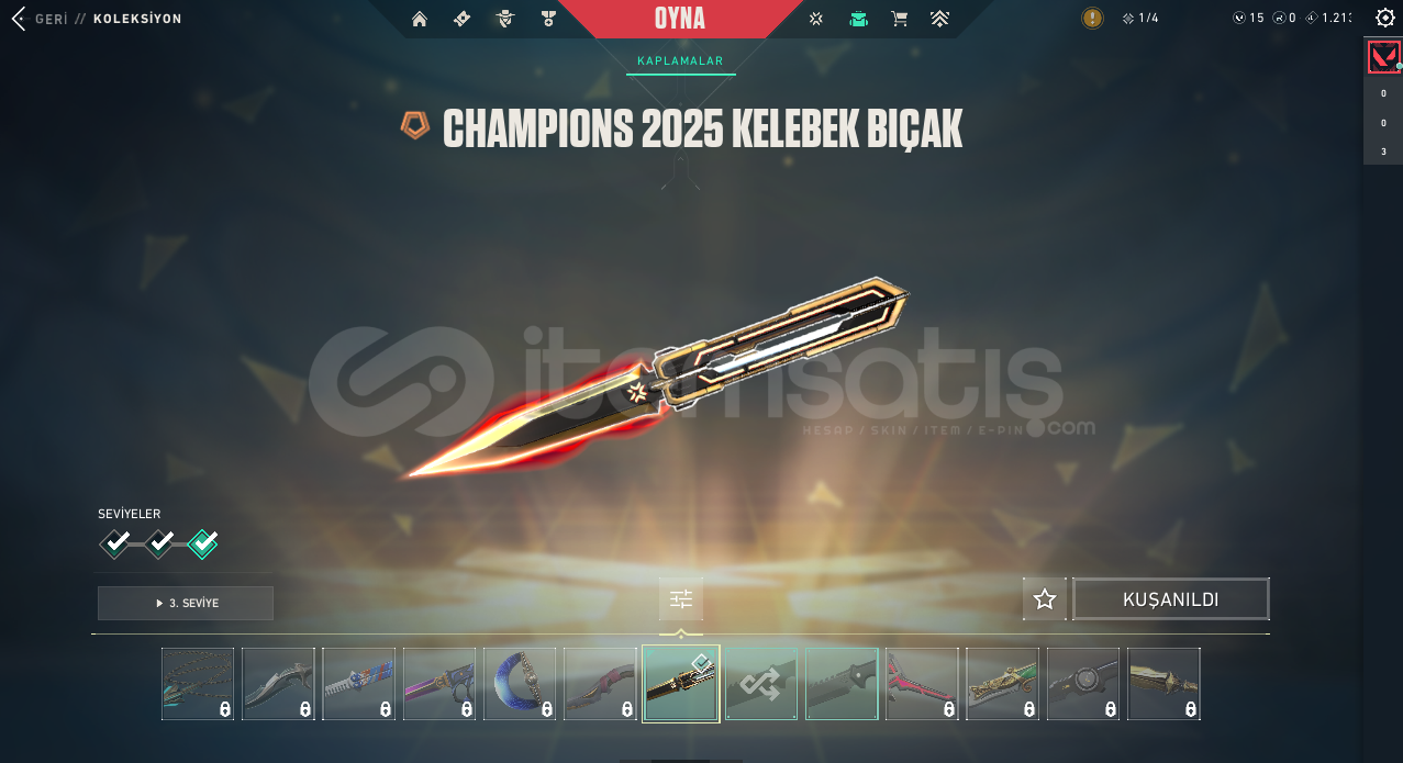 ⭐ Hesapta Champions 25 Bıçak  , Champions 25 Vandal  Kaos Vandal , Felaketin Kalbi Vandal Sır Çiçeği Sheriff , Özel Harekat Ghost , R.E.S Phantom , Asil Phantom bulunmaktadır.