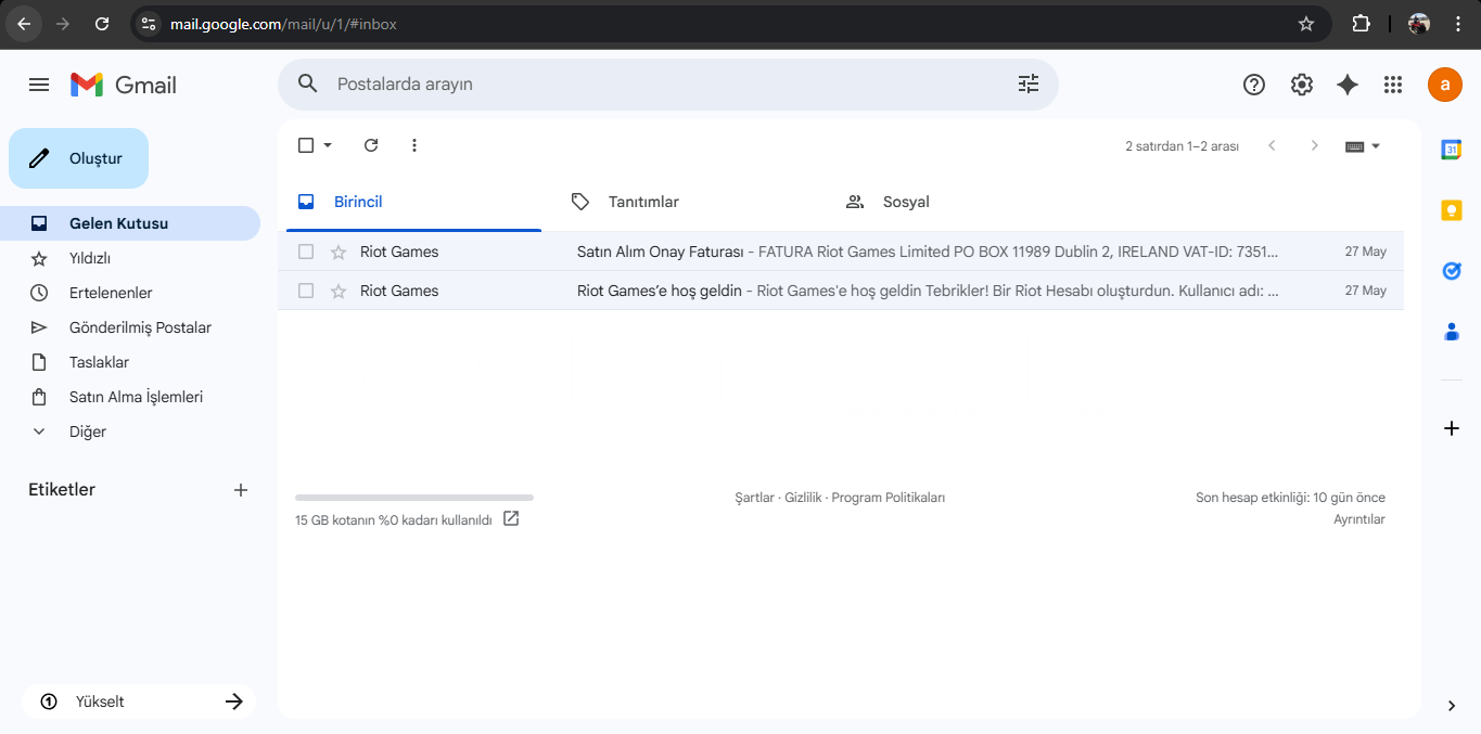 🔸Riot Gamese Hoş Geldin Maili Vardır.