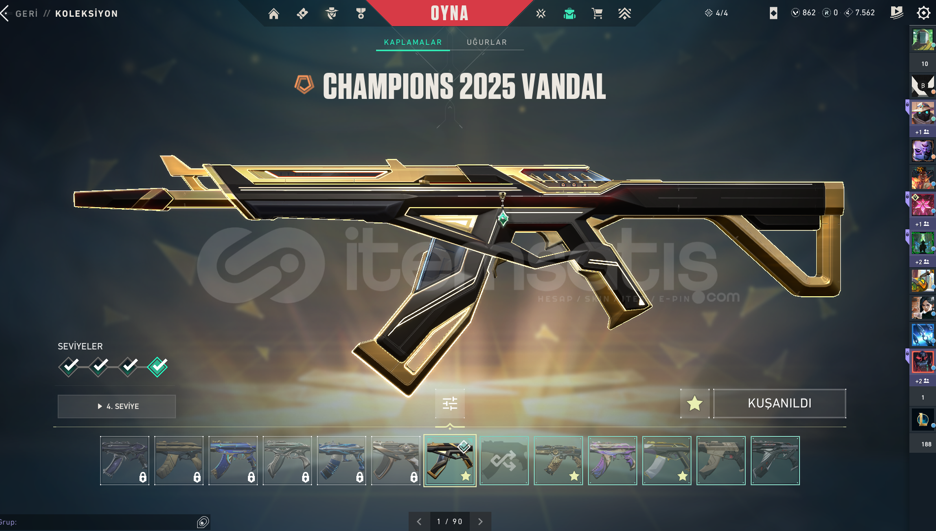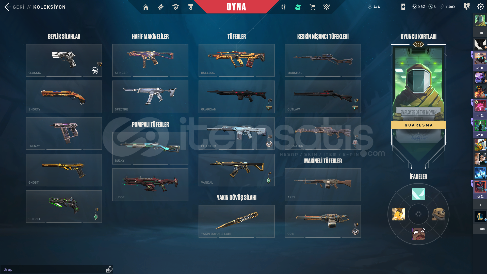 Vandal1-Sihir Punk2-Ejder Buyruğu3-Asil4-Neptün5-Aemondır6-Işık Muhafızları7-Ulu Pençe8-Kaos9-Evrim10-GaiaPhantom1-Yıldız Belası2-Fatih3-Gaianın intikamı4-Rgx5-Yıkım Elçisi6-Radyant KriziŞerif1-İyon2-Rgx3-Yıkım Elçisi4-Seri Tetik5-Yıldız BelasıBıçak1-Rgx Karambit2-Yıldız Parçalyan3-Yıkım Elçisi4-5. Yıl Beta Odin1-Seri Tet...