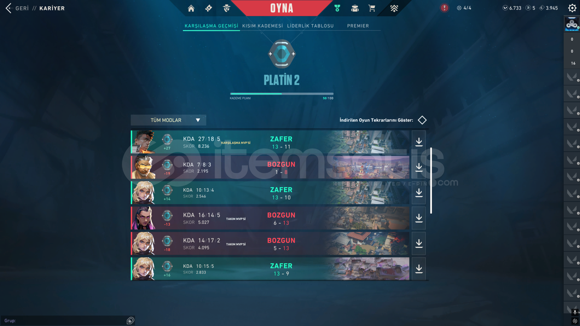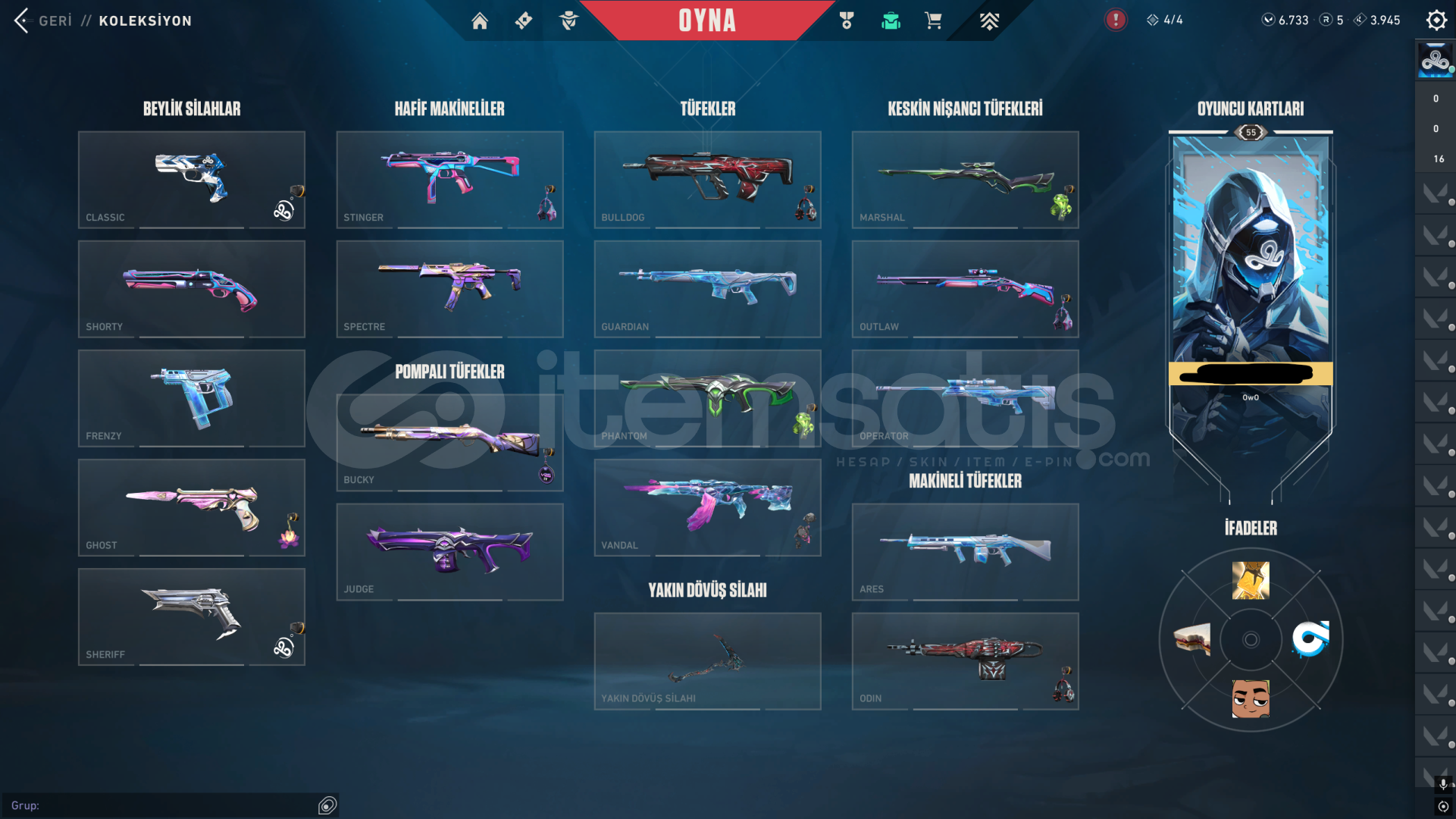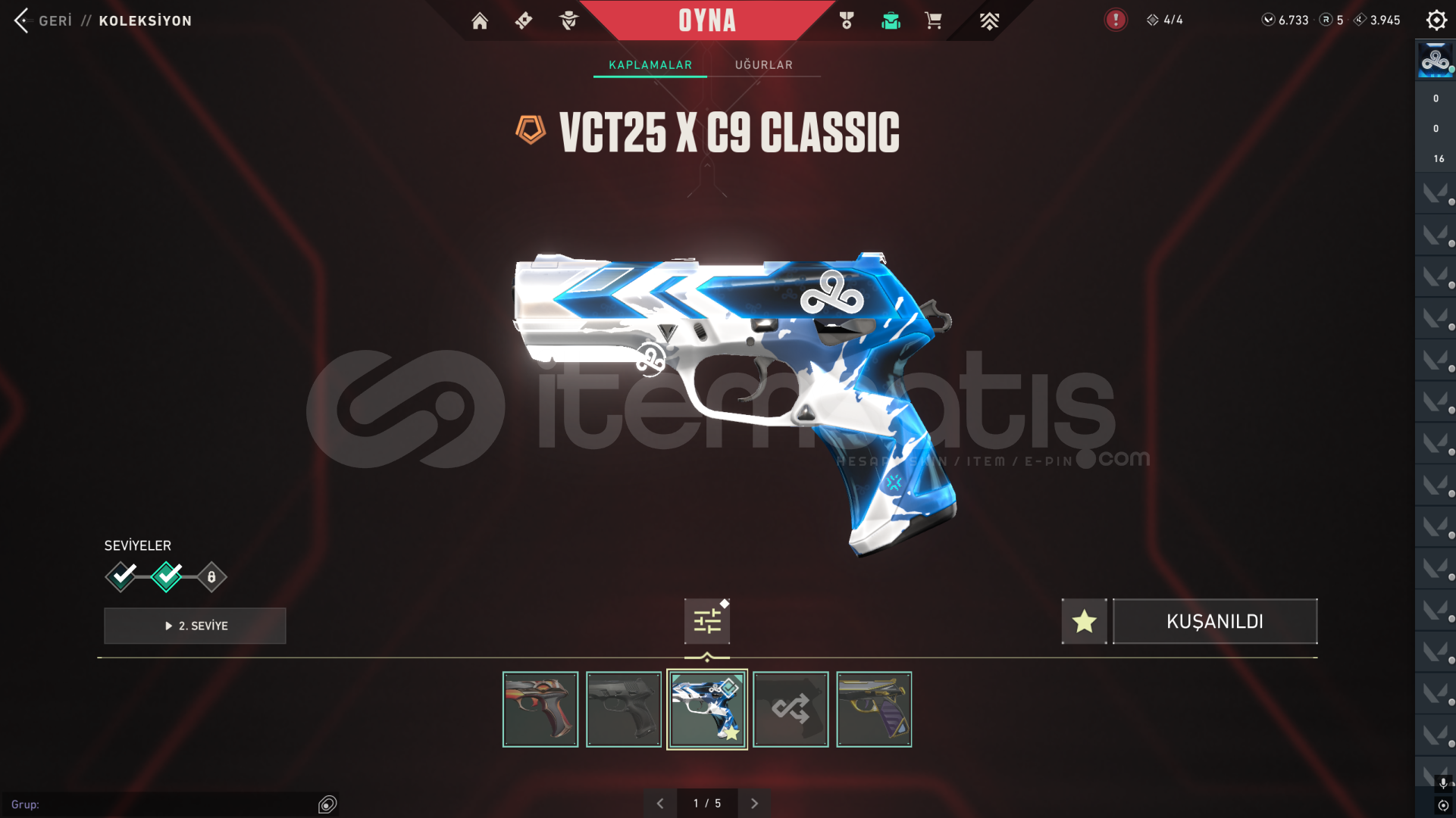 Hesapta kullanıma açık 6733vp bulunmaktadır.Hesabın ilk sahibiyim, pazarlık payı mevcuttur.Hesapta 2 adet battlepass + VCT x C9 Bundle'ı satın alınmıştır.Hesabın içerisindeki skinler;Vandal ( Faz Koruyucu, Champions 2025, Dolmirin İntikamı, +2 Battlepass )Bıçak ( Zifiri Tırpan, Ulupençe Bıçak, Champions 2025 Kelebek, Yitik Hançer, +2 Battlepass )Classic ( Asil Class...