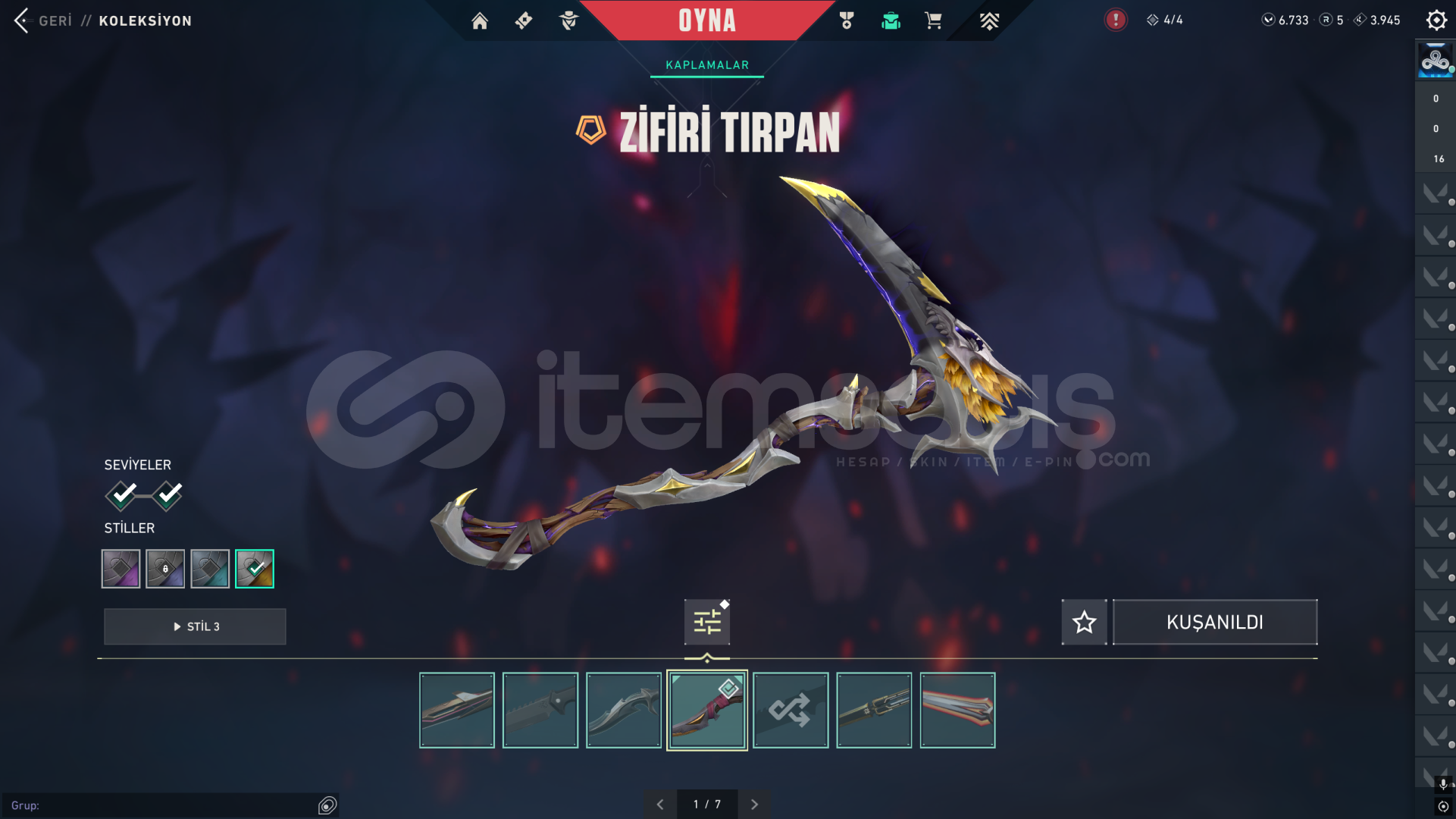 • Bıçak ( Zifiri Tırpan, Ulupençe Bıçak, Champions 2025 Kelebek, Yitik Hançer, +2 Battlepass )