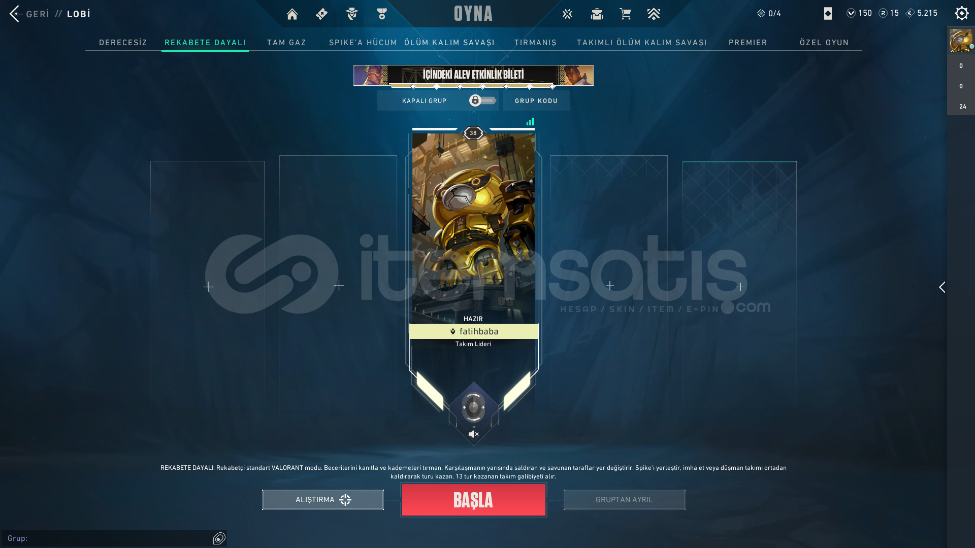TR SUNUCUSUDURMAİL DEĞİŞİMİ YAPILACAKTIR38LVL HESAPRANK: DEMİR2SKİNLER:CHAMPİONS 25 VANDAL. YAĞMACI SHERİFF