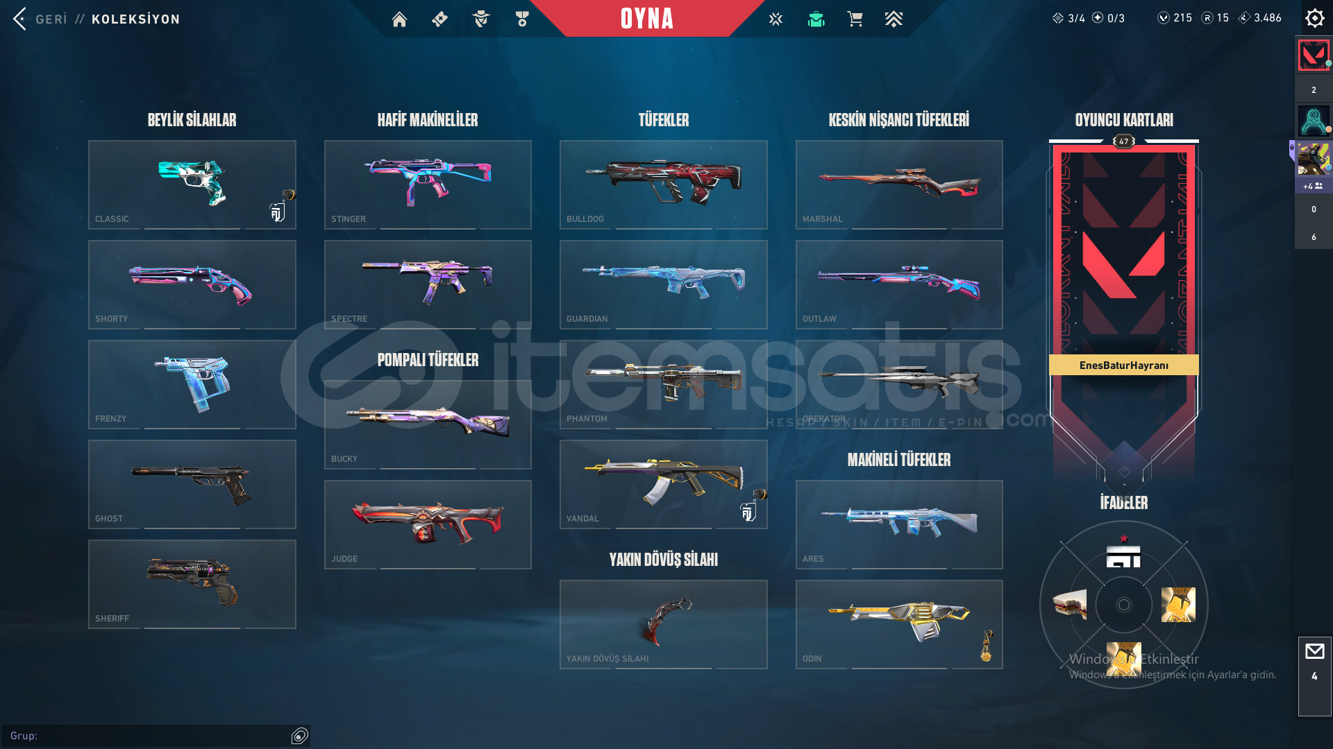 hesap dopdolu47 seviye diamondilk mailli maili size devredilecektirhesap içerisindeki skinler:asil vandalchampions 2025 vandaldolmırin intikamı vandalkaos phantomkaos sherifffaz koruyucu ghostfut classicyıldız belası operatorasil odinyagmacı karambitchampions 2025 kelebekve 2 adet battlepass bulunmaktadır.pazarlık vardır sormak istediğiniz soru varsa yazınızoyunu bıraktıgımdan ötürü satıyorum