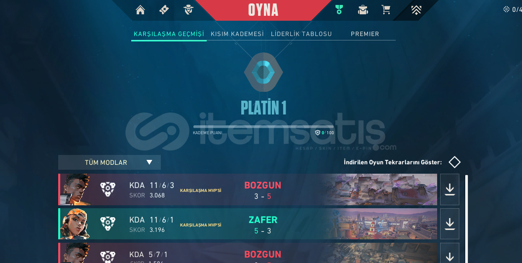 Hesap görüldüğü üzere tam mainlemelik hesaptır rank plat 1 hiç bir ban vesaire yoktur tertemiz hesap skinleri aşağıya yazıyorum
