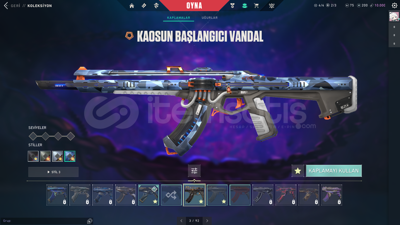 selamlarhesap gordugunuz gıbıdır gorseldekılerle.kaosun baslangıcı vandal2025 vandaliyon serıf2025 kelebekrgx katanahızlı ve olumcul karambıtkıvrım hancerve bır kac bp skınlerı vs.ACİL satılıktır.mail devredilecektir.