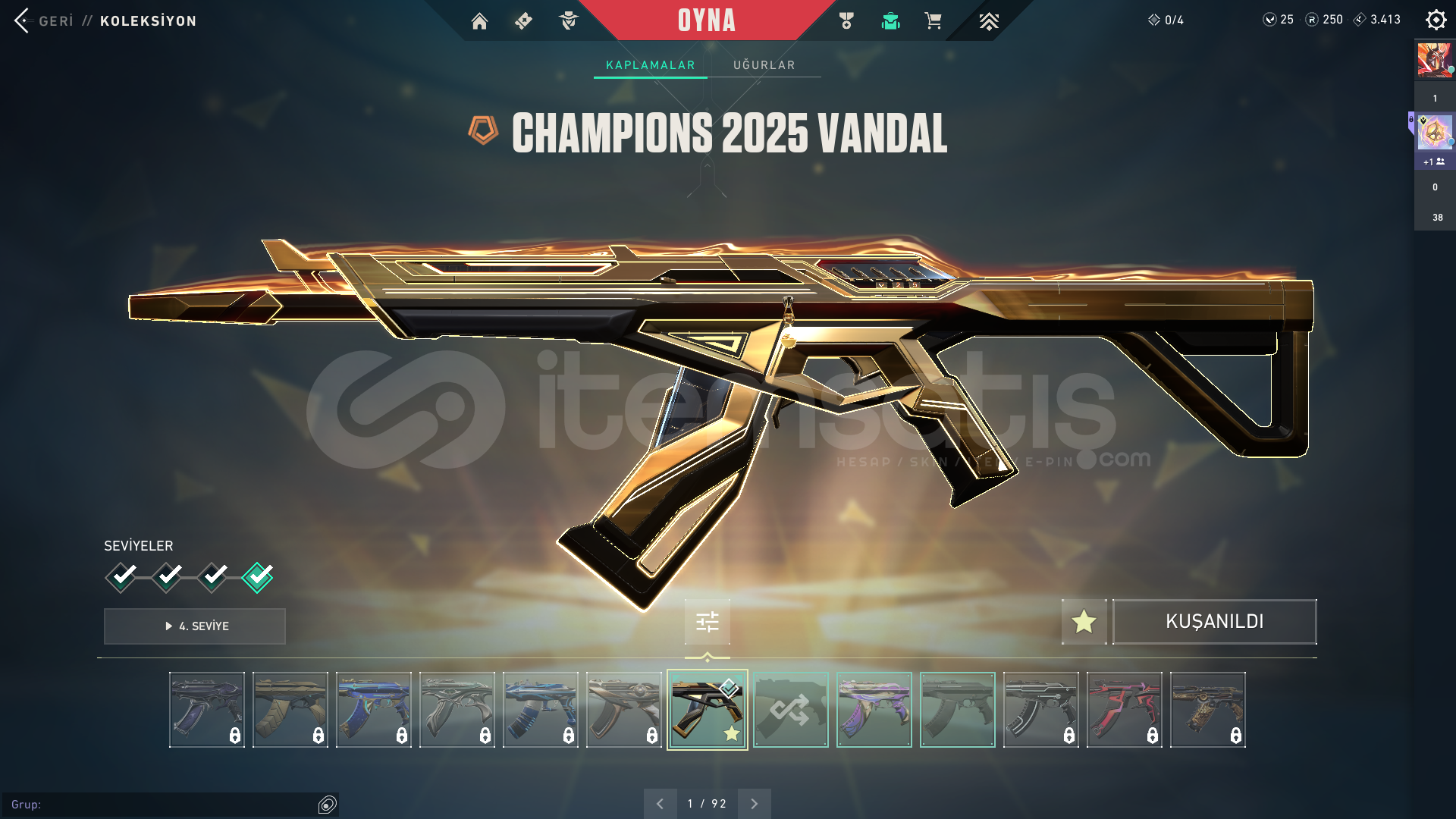 Hesap mail ile teslim edilecektir2025 Champions vandalGalaksi muhafızı kılıcı varBP Skinleri mevcutDemir 3PAZARLIK VARDIR.OTO TESLİMDİR ALDIĞINIZ ANDA TÜM BİLGİLER İLETİLİR