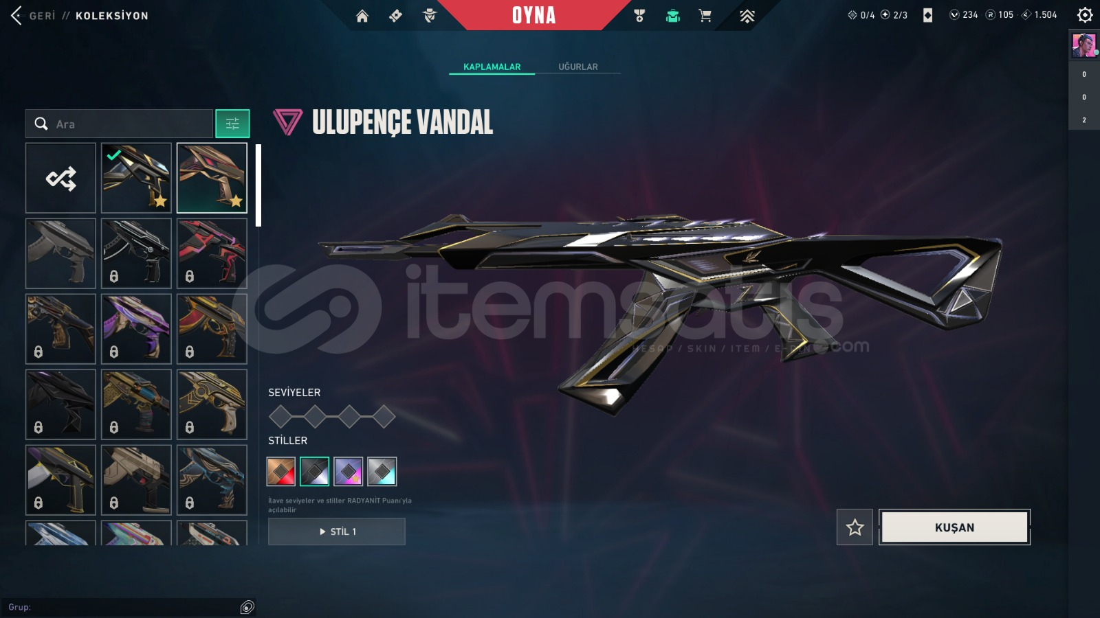 hesapta 2 tane vandal vardır 1 battle pass vardır 1 bıçak vardır alıcısına hayırlı olsun