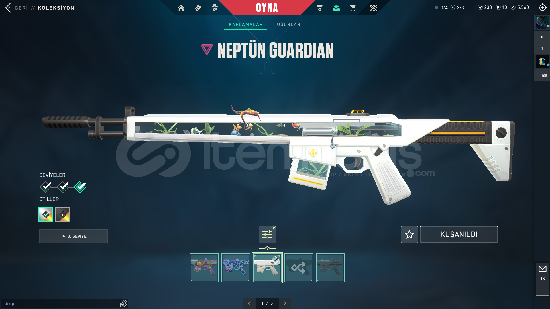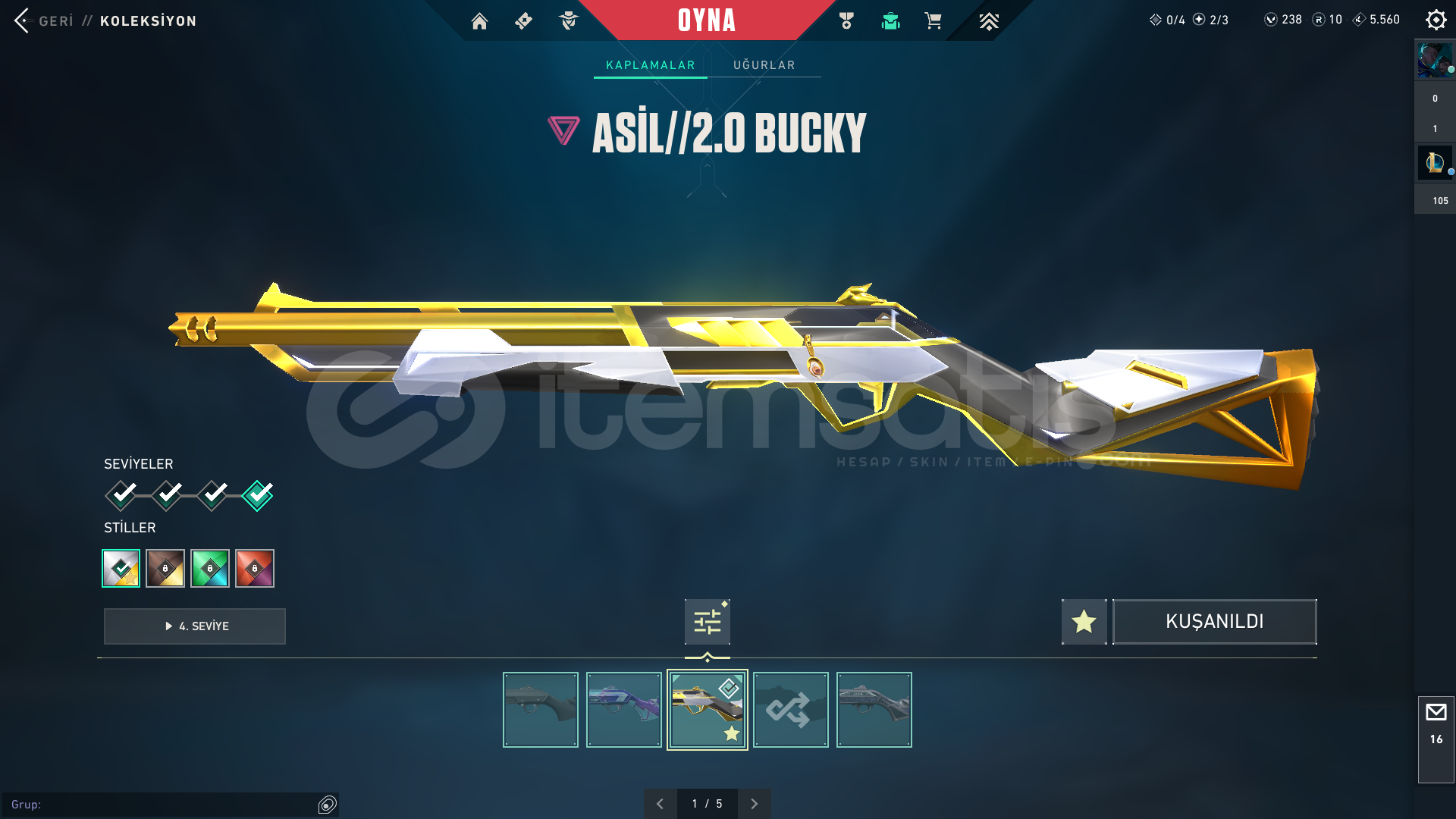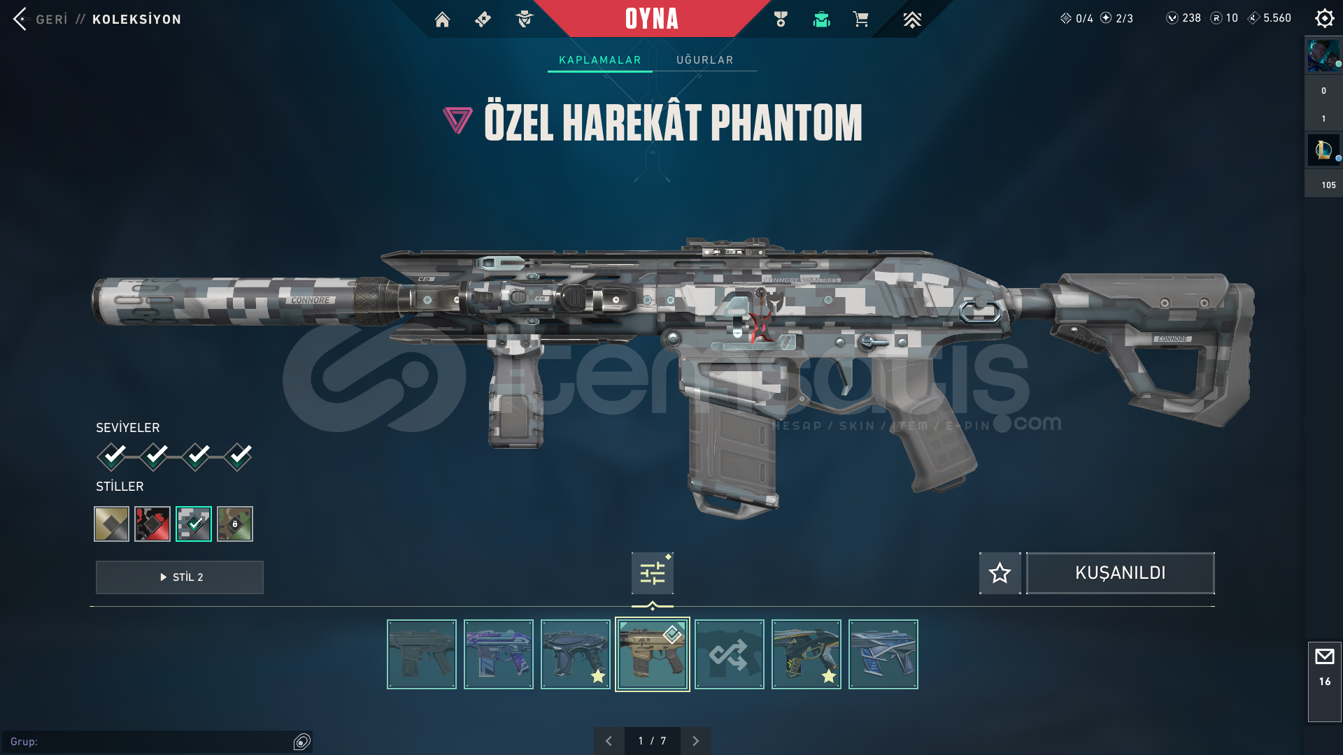 hesapta 15 tane bıçak vardır(+2 BP TOPLAM 17), 8 vandal, 3 phantom, 1 sheriff, 1 operatör,1 spectre, 1 bucky, 1 clasic,1 guardian, 1 shorty vardır outlaw hariç her silahtada bp skinleri mevcuttur