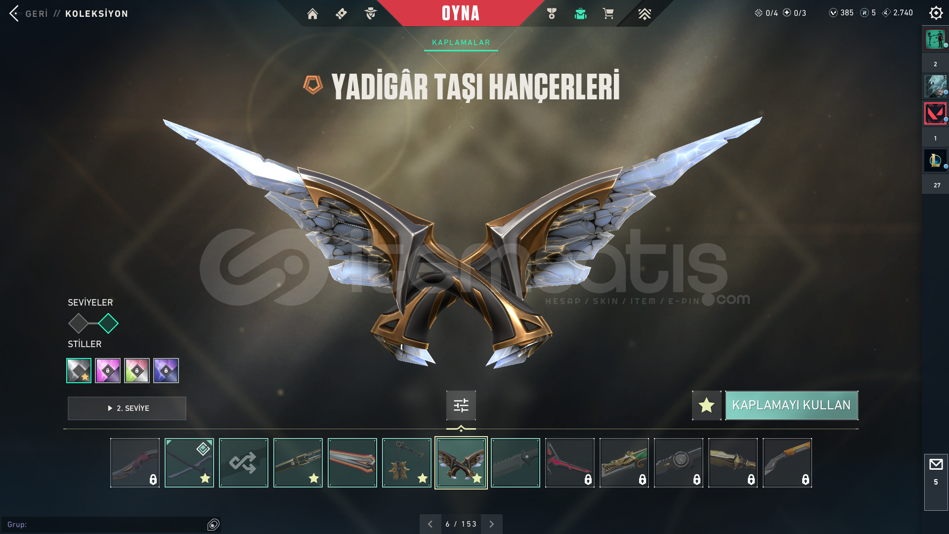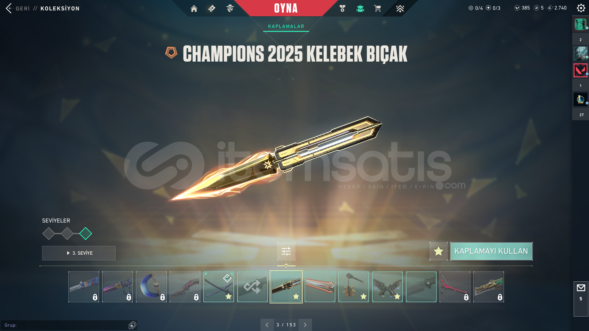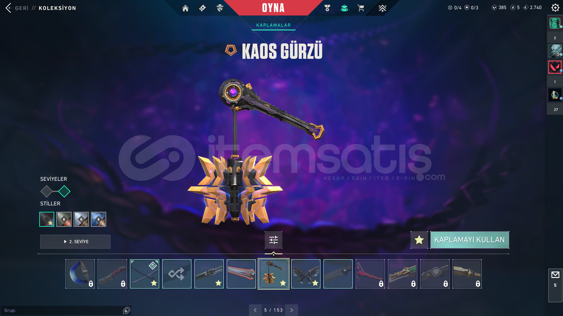 champions 2025 ve kaos seti alinmistir diger skinler ayri satin alinmistir