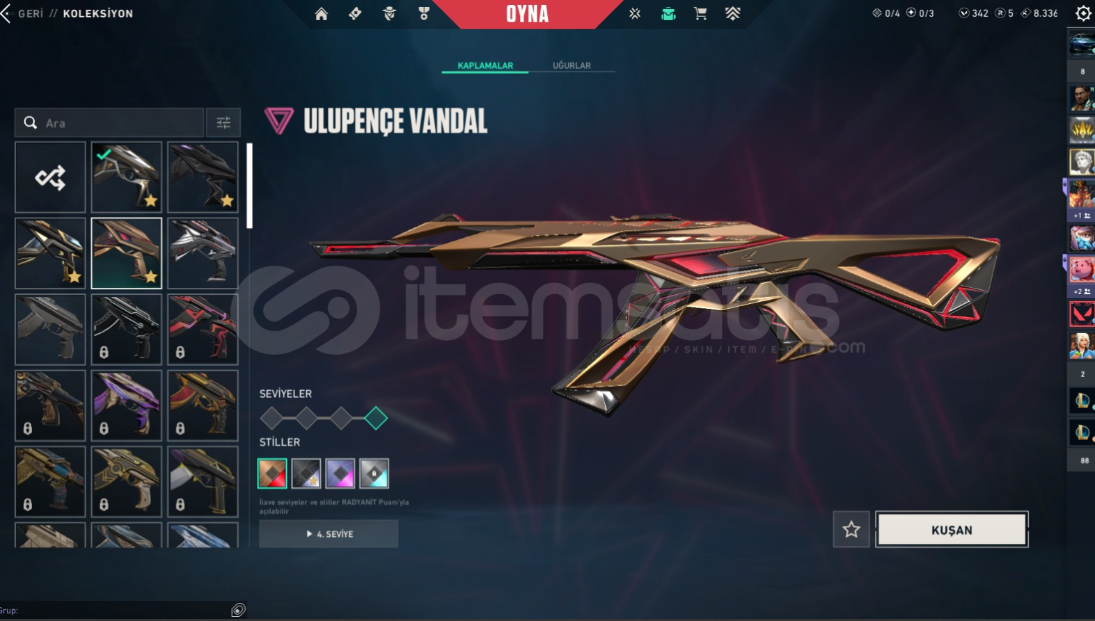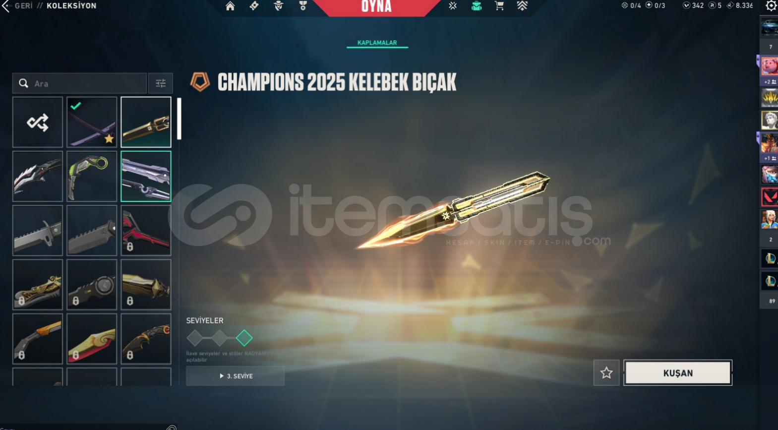 Plat 1 Hesap116 Seviye2 Battle PassYitik ClassicCesur Yürek GhostAnomali SheriffIşık Muhafızı VandalAnomali VandalChampions 25 VandalUlupençe VandalGaianın İntikamı PhantomÖzel Harekat PhantomYağmacı OperatörExo KatanaRgx KarambitChampions 25 KelebekUzaylı Avcısı BayonetPazarlık Payı az da olsa vardır.