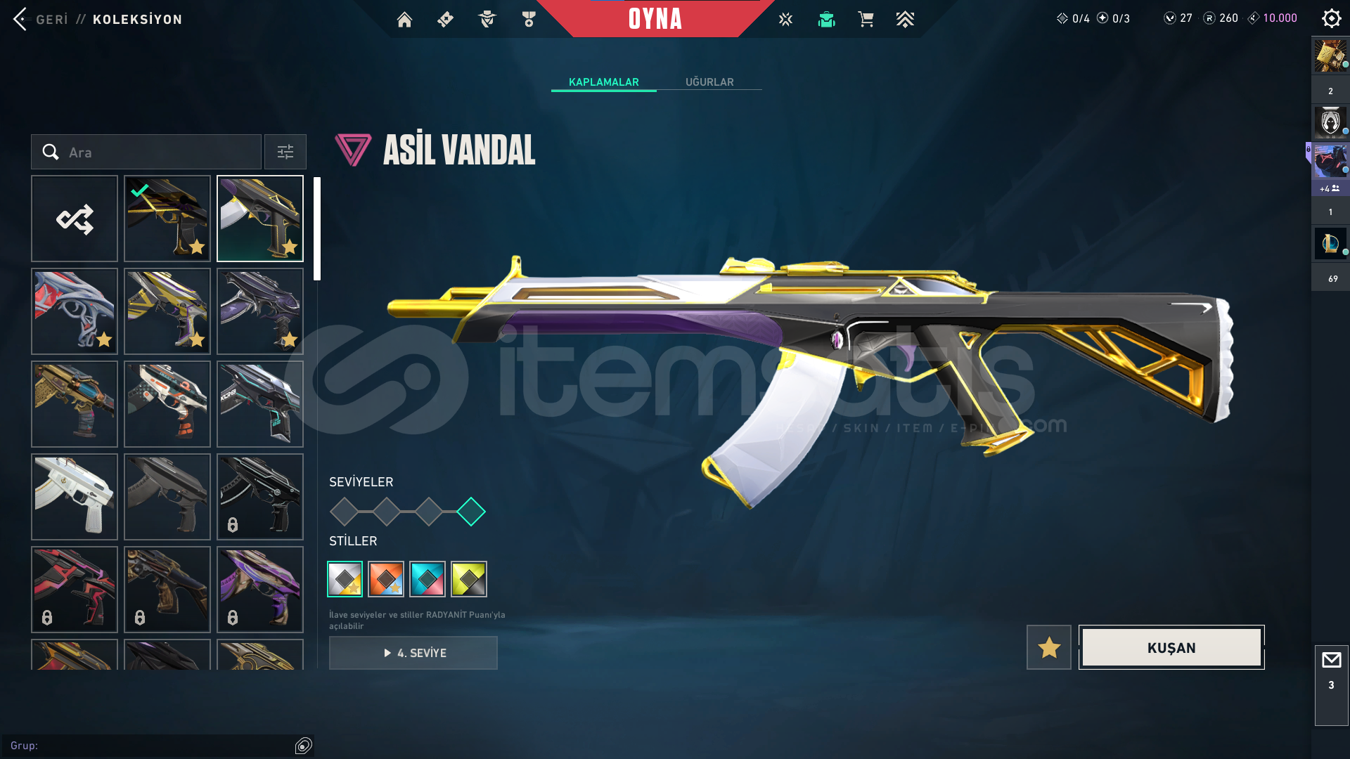 Hesabım emek hesabıdır, zamanım olmadıgı için satıyorum.VANDALLAR(YÜKSELTİLMİŞ):CHAMPİONS 2023 VANDALARCANE VANDAL GAIANIN İNTİKAMI VANDALYAĞMACI VANDAL ASİL VANDAL NEPTÜN VANDALBIÇAKLARYAĞMACI KARAMBİTUZAYLI AVCISI BIÇAĞIRGX KELEBEKSEMAVİ YELPAZEBATTLEPASS BICAKLARIPHANTOMLARÖZEL HAREKAT PHANTOMONİ PHANTOMBATTLEPASS PHANTOMLARITABANCALARYAĞMACI SHERİF...