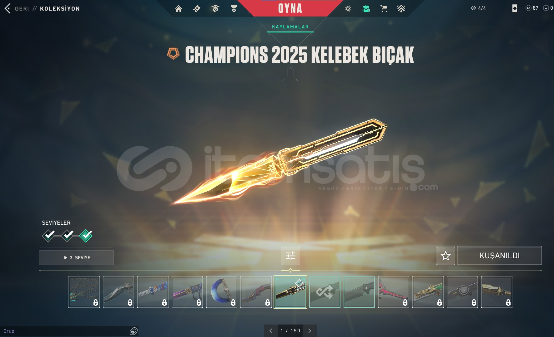 Hesap Hakkında BilgilerCHAMPİONS KELEBEKCHAPİONS VANDALCHAMPİONS DONATVE CHAMPİONS SETİUZAYLI AVCISI BAYONETKAOS PHANTOMÖZEL HAREKAT GHOSTSİTEDEN ALACAKLARA 1900 TL KOMISYON DAHIL İBAN VS 1700 TL!!!!