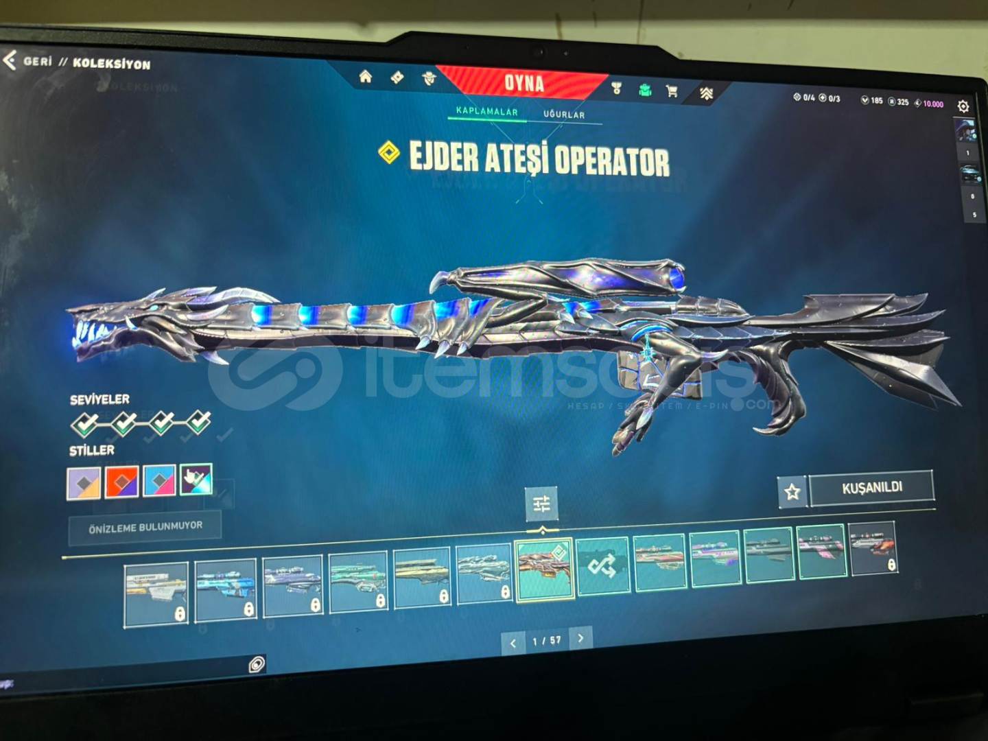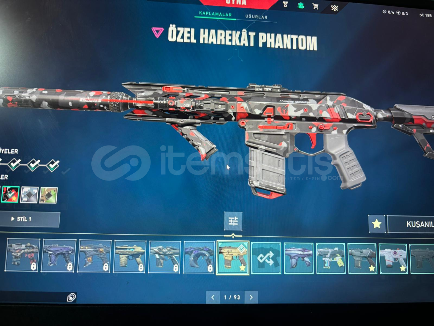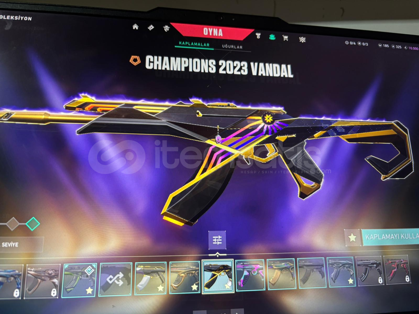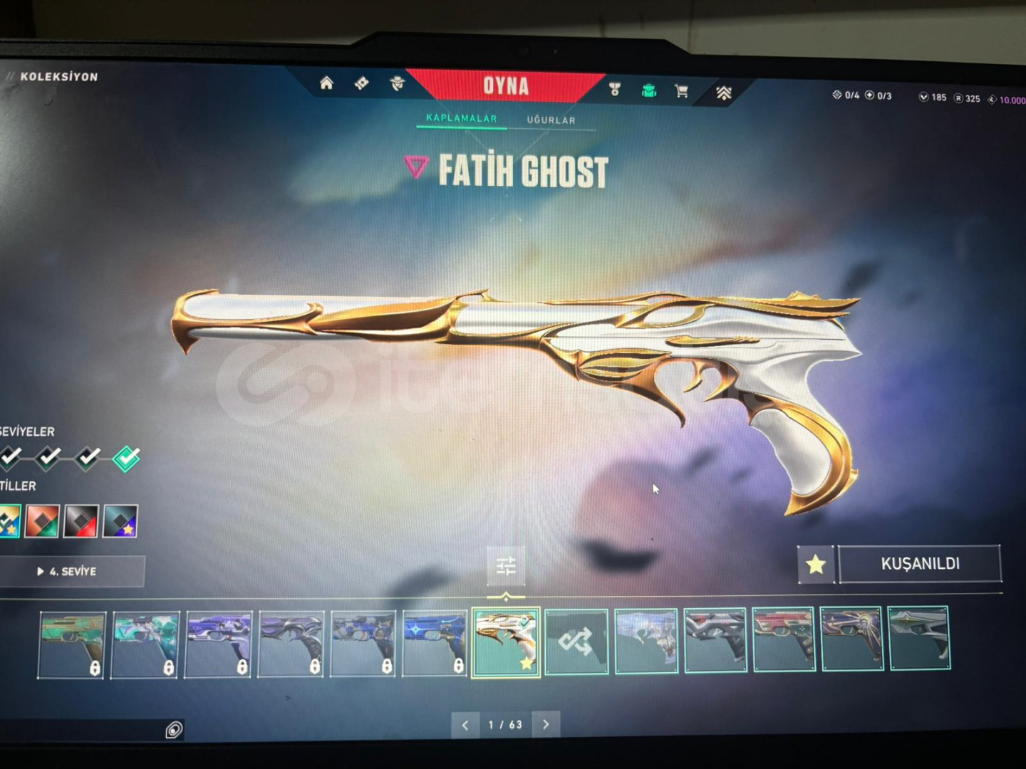 Hesabımızda 5 tane vandal (asil,yitik,rgz,cesur yürek,Champios 23) 3 tane phamtom(spektrum,özel harekat,seri tetik)1 tane ghost(Fatih)1 tane operatör(ejder)1 tane sheriff(anomali)2tane Classic(fut24,spectrum)2 tane bıçak(iyon,Champios 23)hesapımız elmas görmüş olup şuanki durumu altındır ek olarak diğer silahların hepsinde battle pass skinleri bulunmaktadırpazarlık yapılır