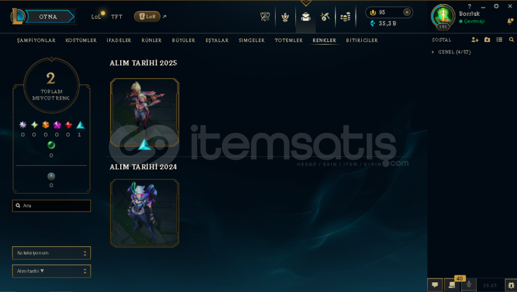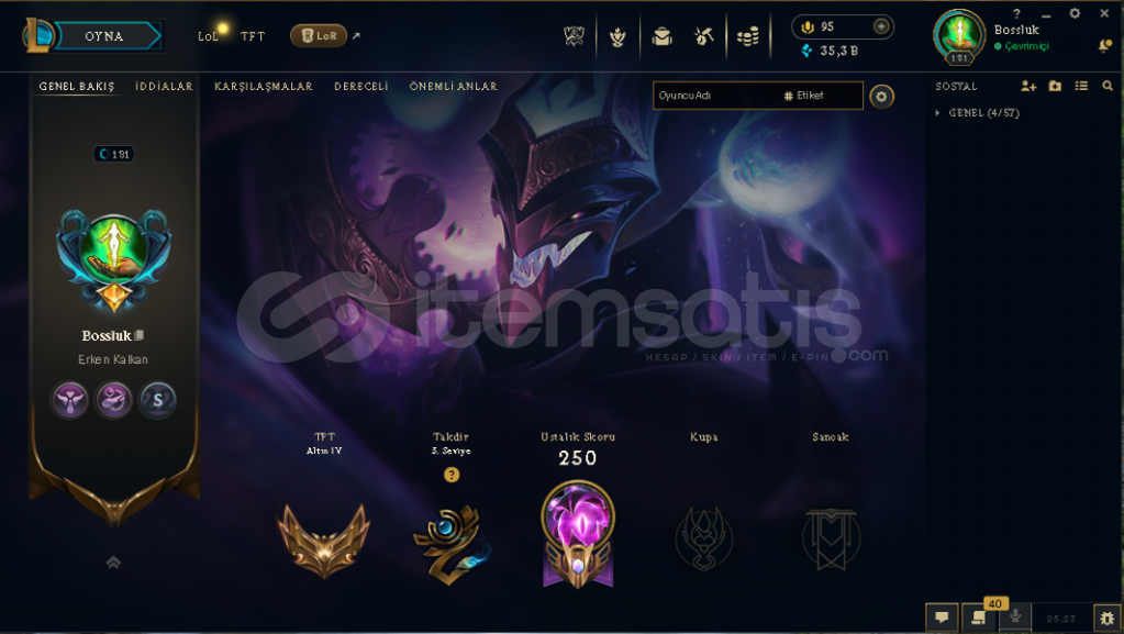RGX KARAMBİT EJDER VANDALYİTİK VANDALONİ PHANTOMANOMALİ SHERİFF2 ADET FULL BATTLE PASS180 LEVEL LOL HESABI İLE BERABER