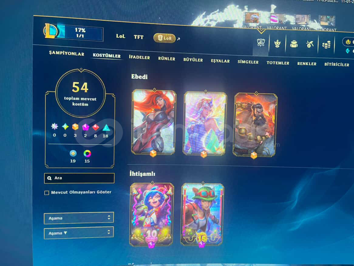 lol hesabıda var 192 lvl 3 efsanevı kostum var