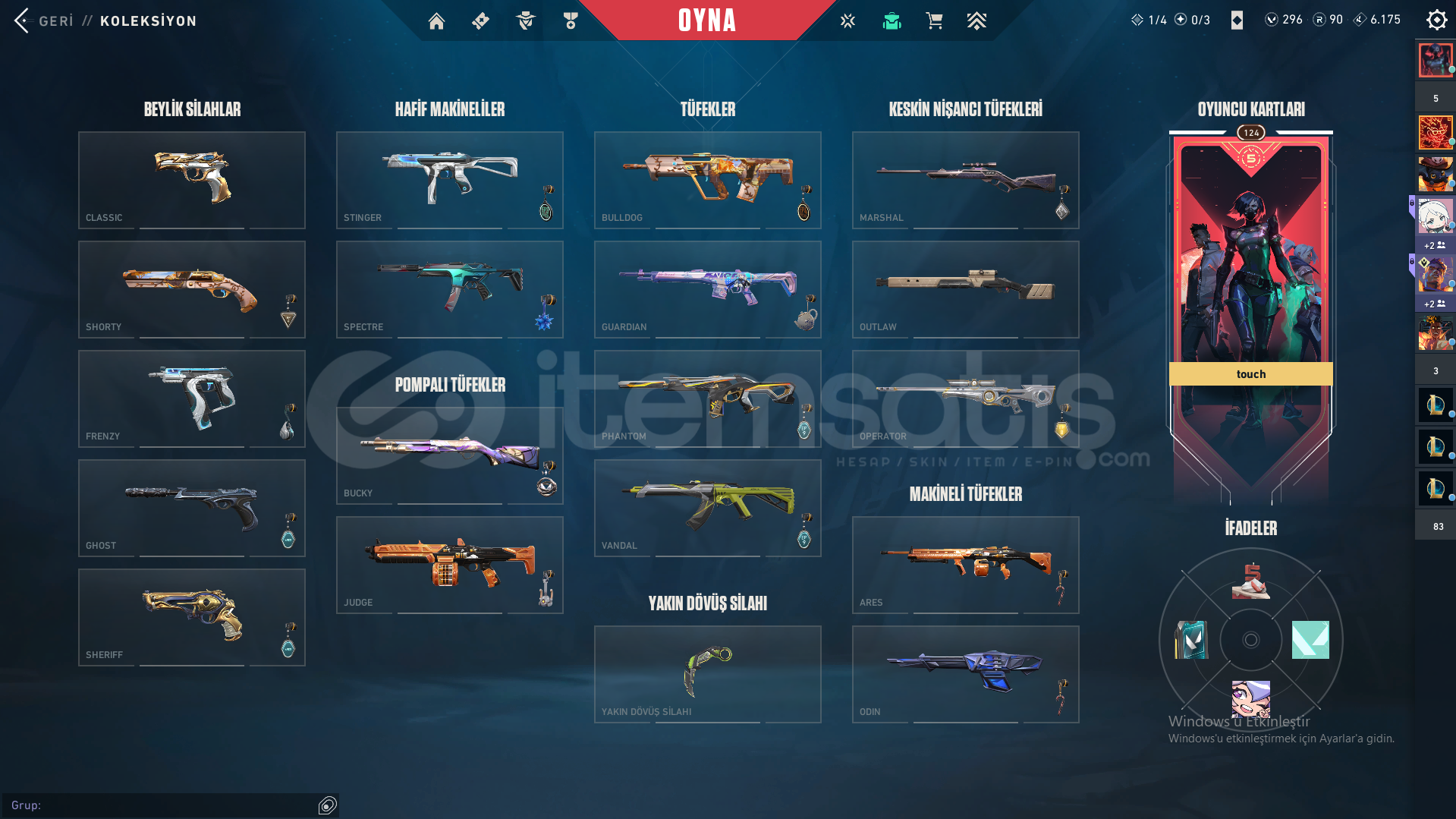 Bu ilanı satın aldığınızda şu skinlere hesabı elde edeceksiniz🔫PhantomChampions 2024 Phantom⭐İyon Phantom⭐Özel Harekat Phantom⭐🔫 VandalAsil Vandal⭐Ejderin Buyruğu Vandal⭐Kuronami Vandal⭐🔫 OperatörKöken Operatör⭐🔫 GhostCesur Yürek Ghost⭐🔫 ClasicYitik Clasic⭐🔫 SpectreAsil Spectre⭐🔫 SheriffEjderhe Buy...