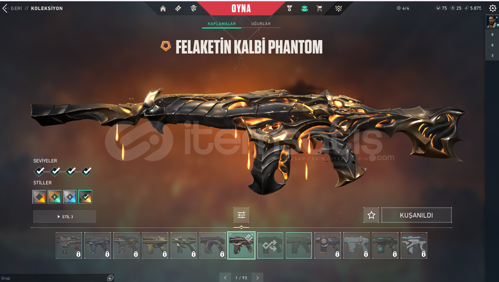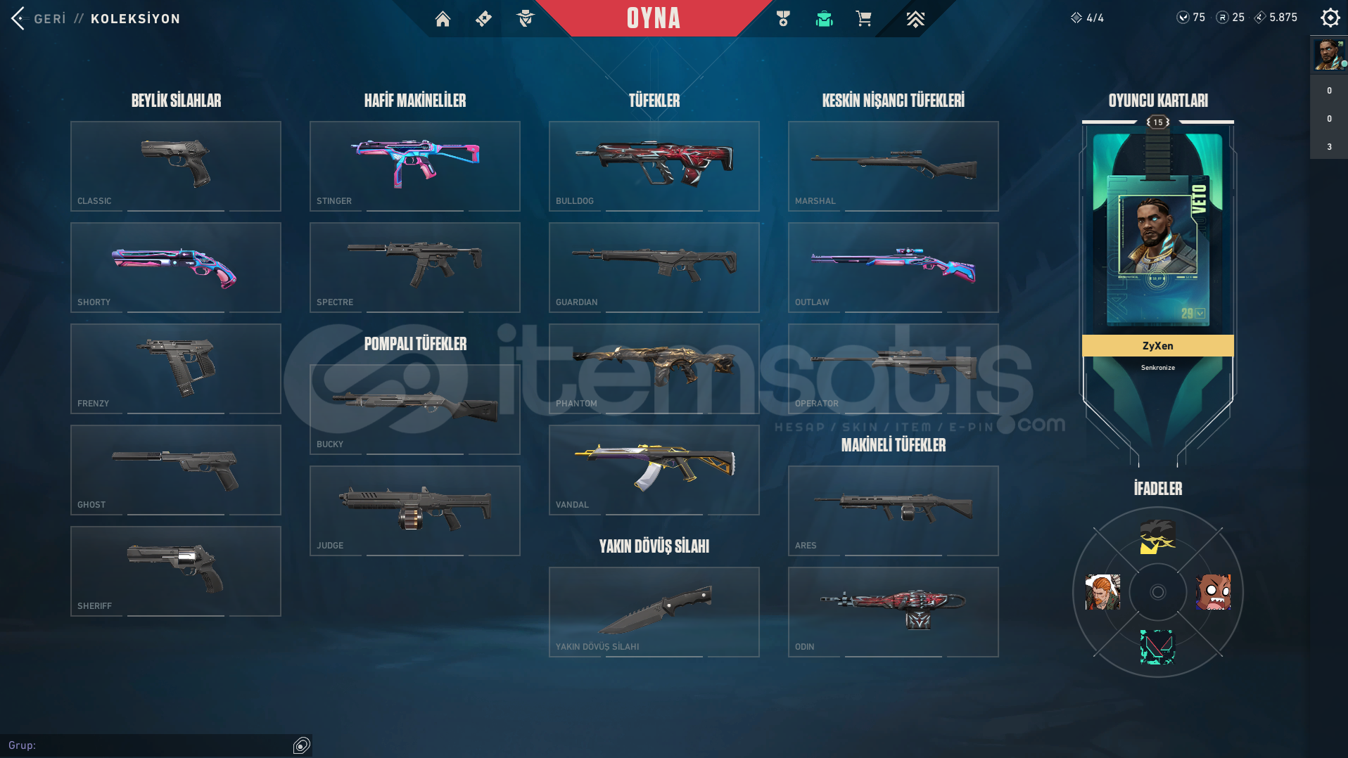 Hesabım Acil Satılıktır hesap cok iyi vandal ve phatom diğerleride var savaş bileti alınmıştır ama görev yapılmamış suan kullanılmıs RP kodları ve Hesap açılış tarihine kadar herşey verilcektir Eposta degişim yapılcaktır Şimdiden Alan kişiye Hayırlı Olsun