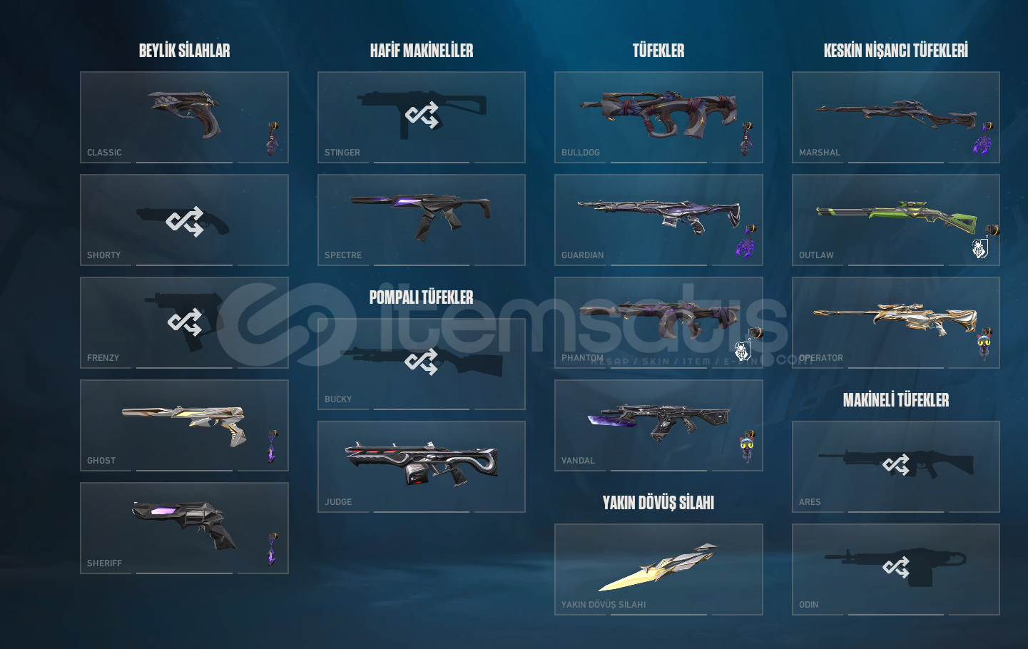 FOTOLARA SIĞMAYAN BİR SÜRÜ SİLAH DAHA VARCLASİC : ZİFİRİ VE G2 CLASİCGHOST : ANOMALİSHERİFF : ANOMALİSPECTRE : ANOMALİGUARDİAN : YAĞMACIBULLDOGG : ZİFİRİMARSHALL : ZİFİRİOUTLAW : RGXOPERATOR : YİTİKPHANTOM : ZİFİRİ ÖZEL HAREKET ANOMALİVANDAL : AEOMANDIR VE ANOMALİBIÇAK : ZİFİRİ VE ANOMALİ KELEBEK