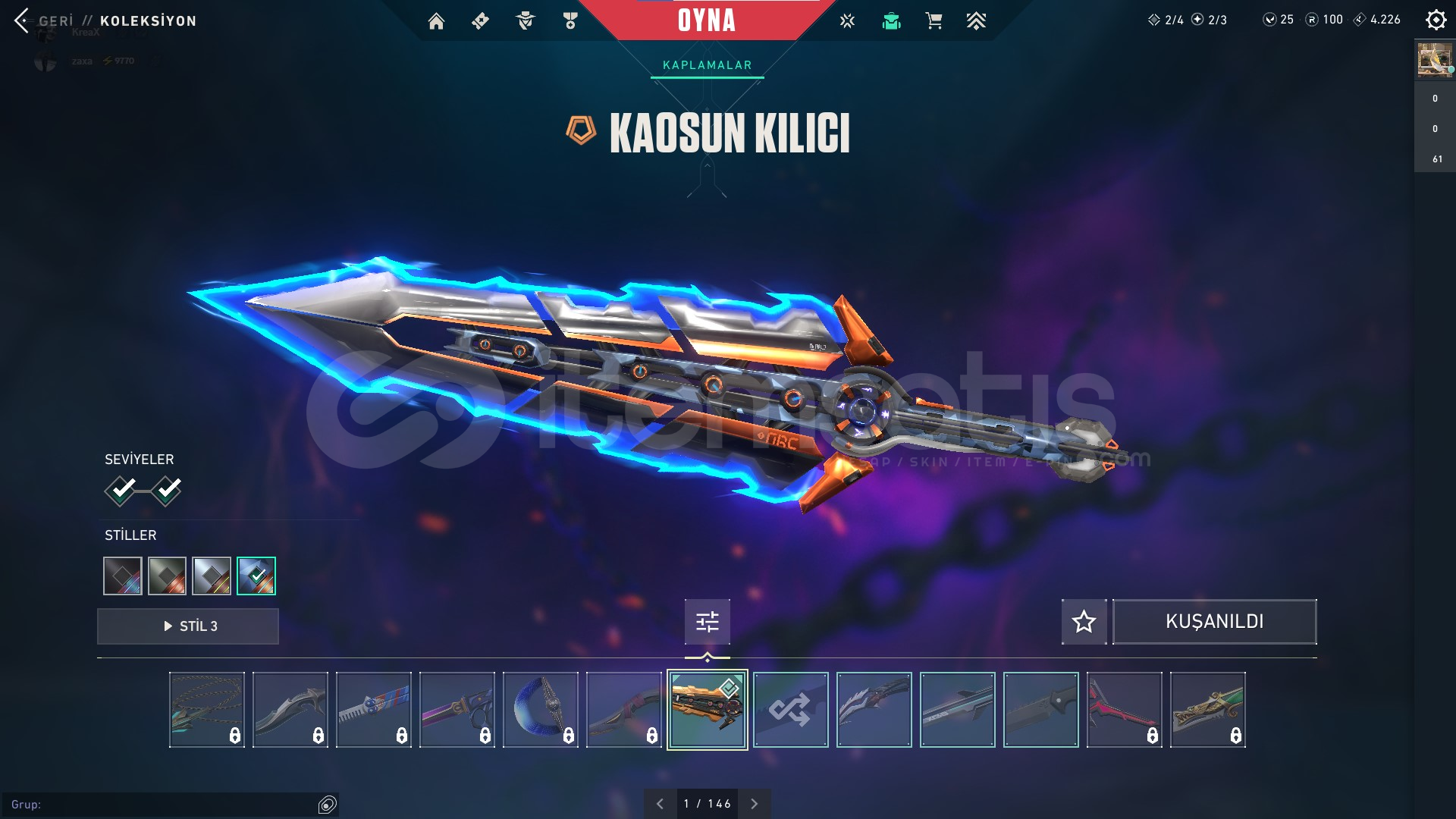 KAOSUN KILICIKAOS VANDALASİL CLASSIC+2-3 ADET BPToplamda 3 adet vandal3 adet bıçak2 adet phantom vardır+150 LEVELAKTİF RANK SİLVER 3AJANLAR FULLPAZARLIK VARDIR