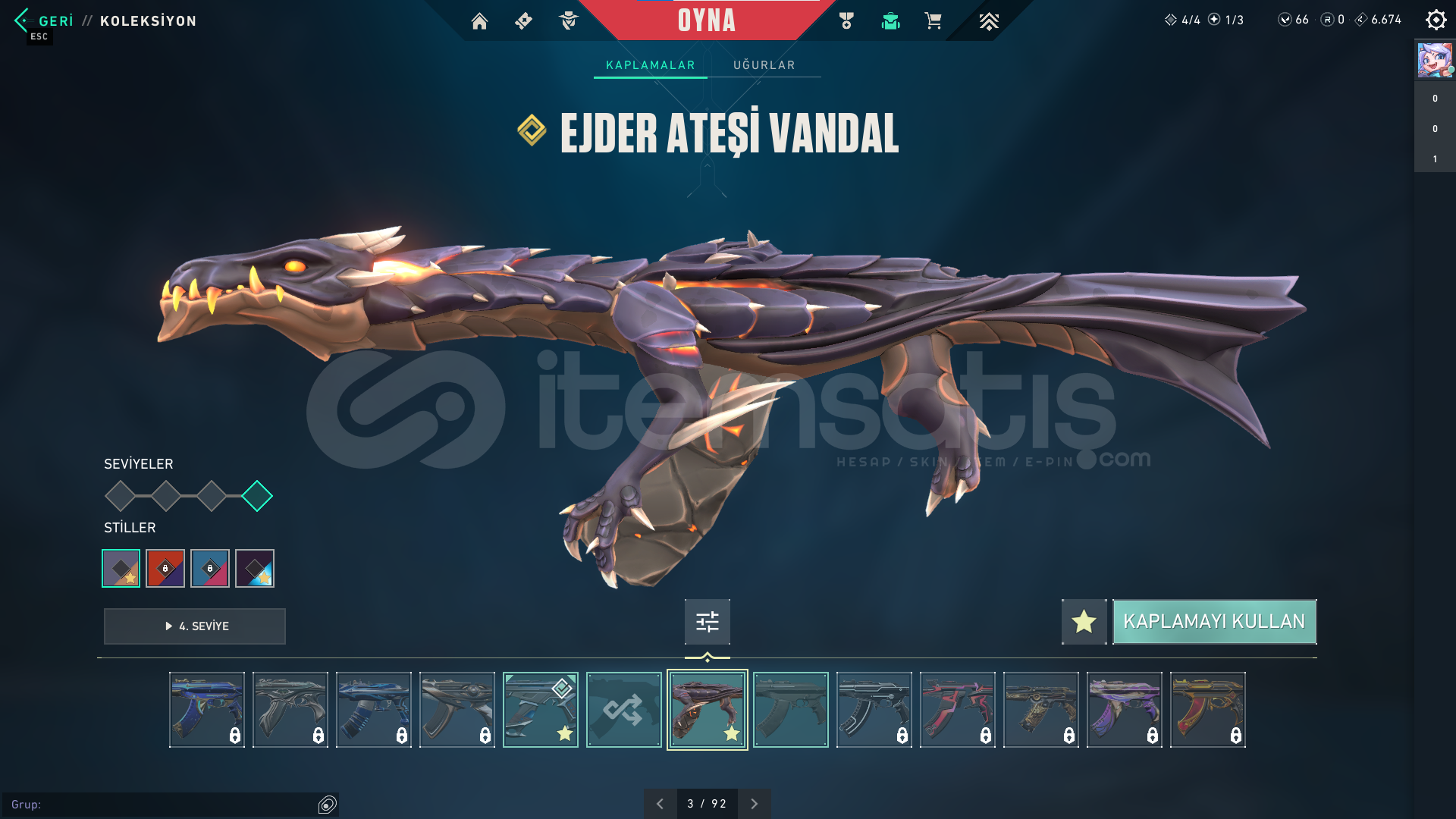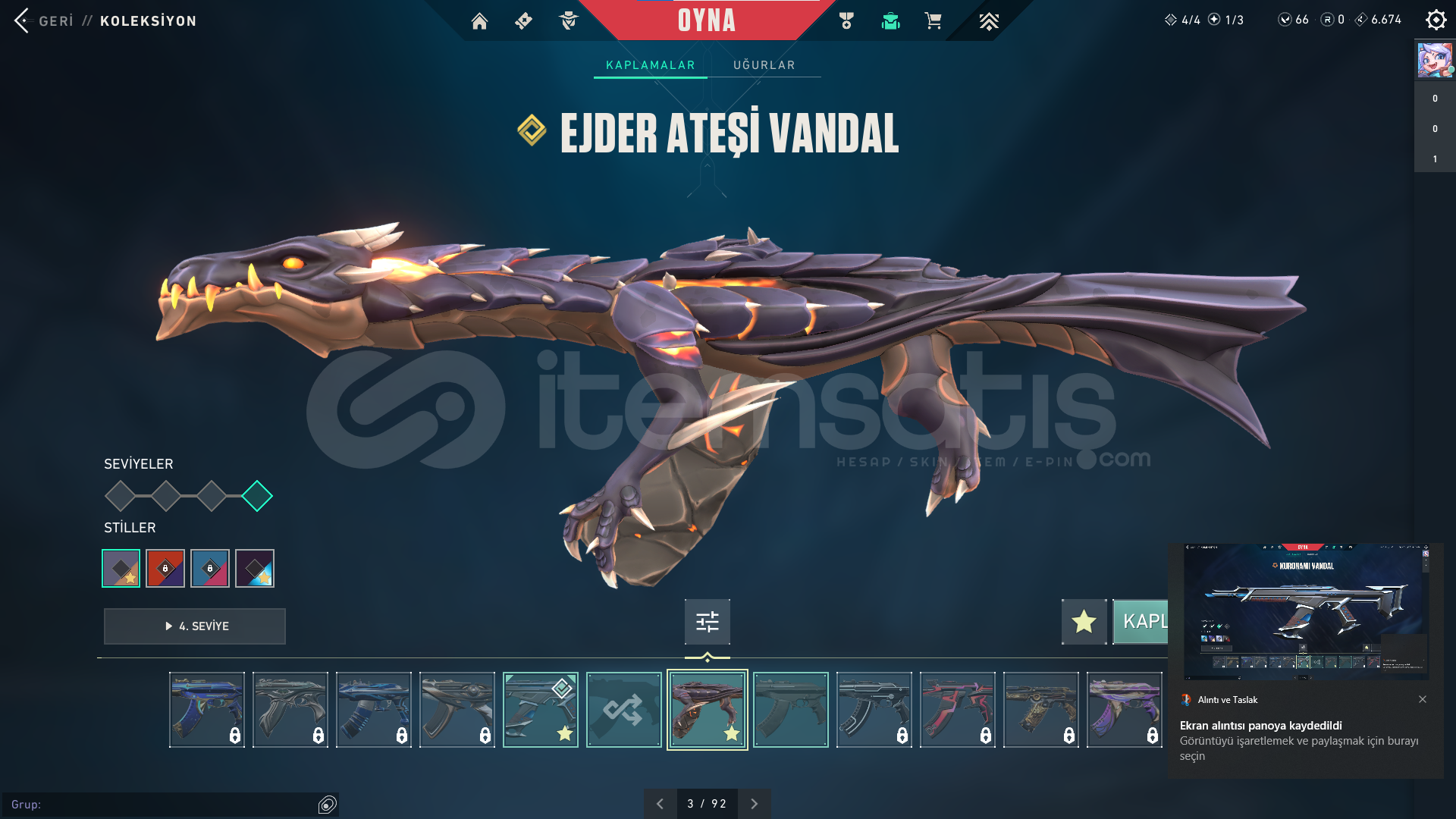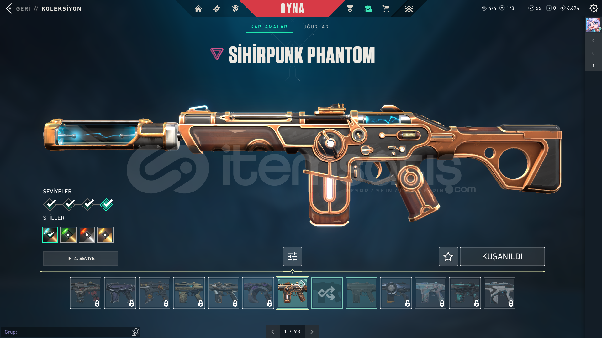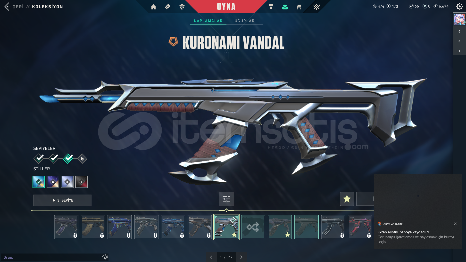 ⭐ Hesabın içinde Asil Odin , Denge , Ejder Ateşi Vandal , Kuronami Vandal , Seri Tetik Sheriff , Sihirpunk Phantom , Iyon Operator , Yağmacı Spectre ve Kum Fırtınası Sheriff skinleri bulunuyor.