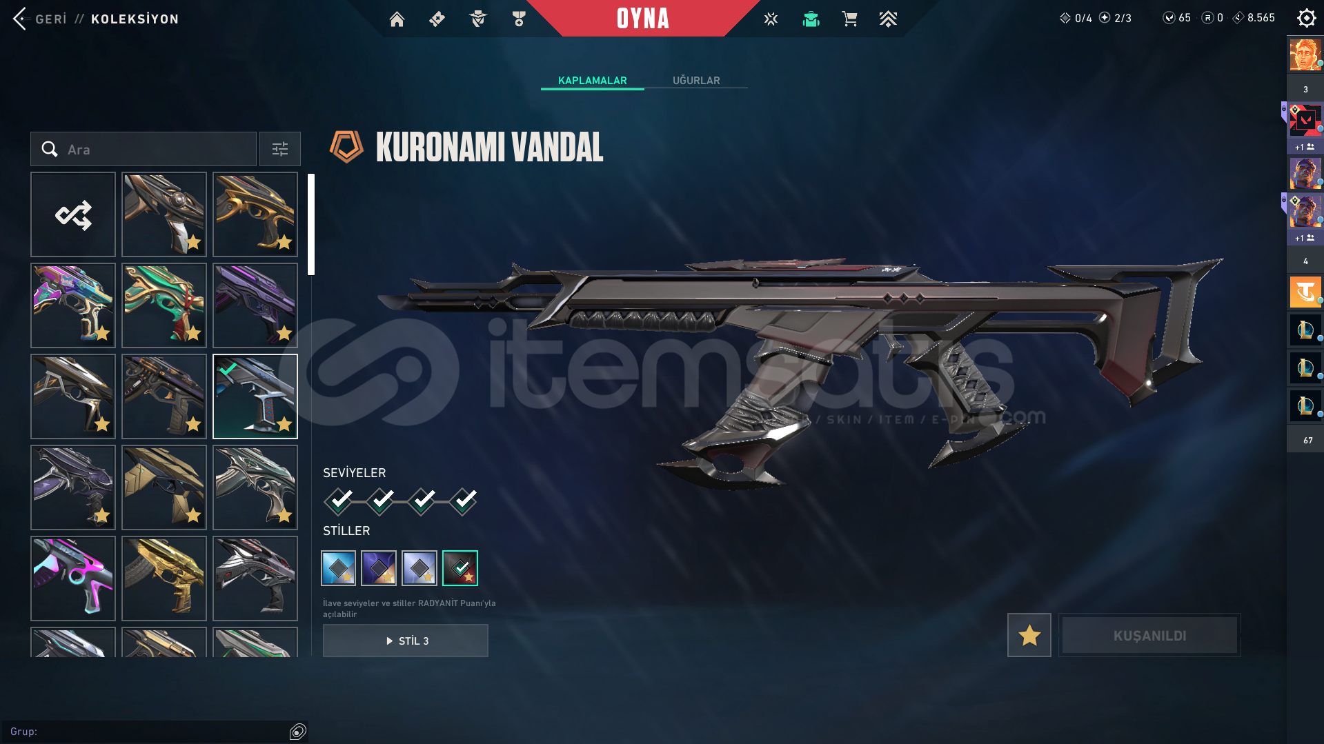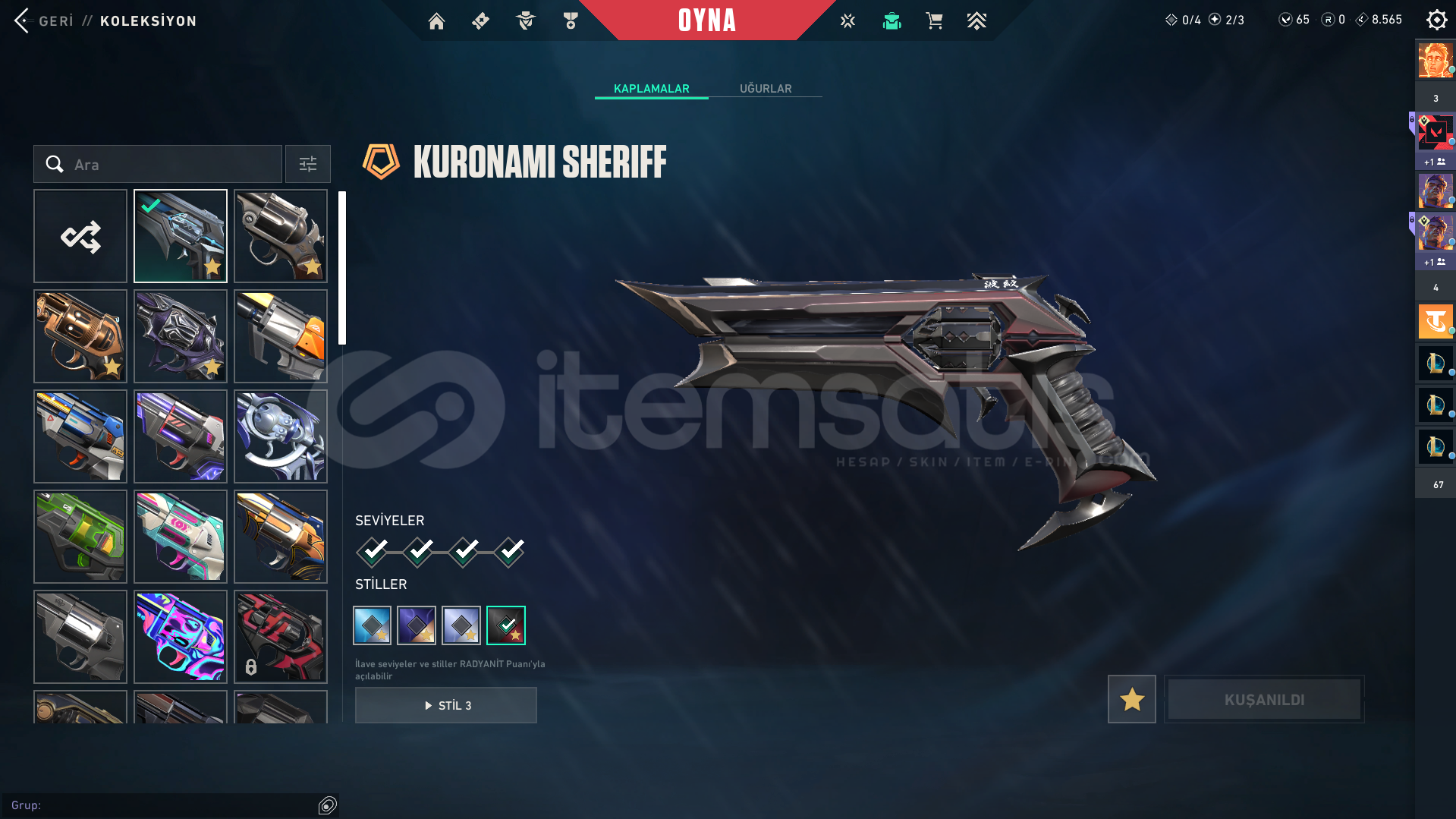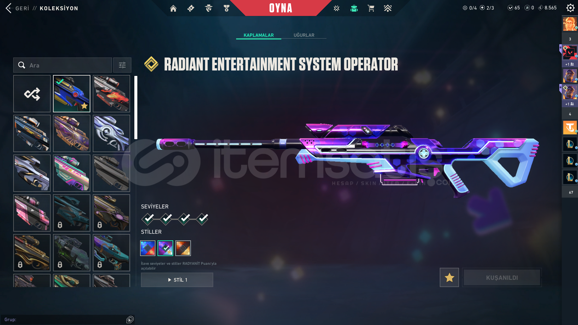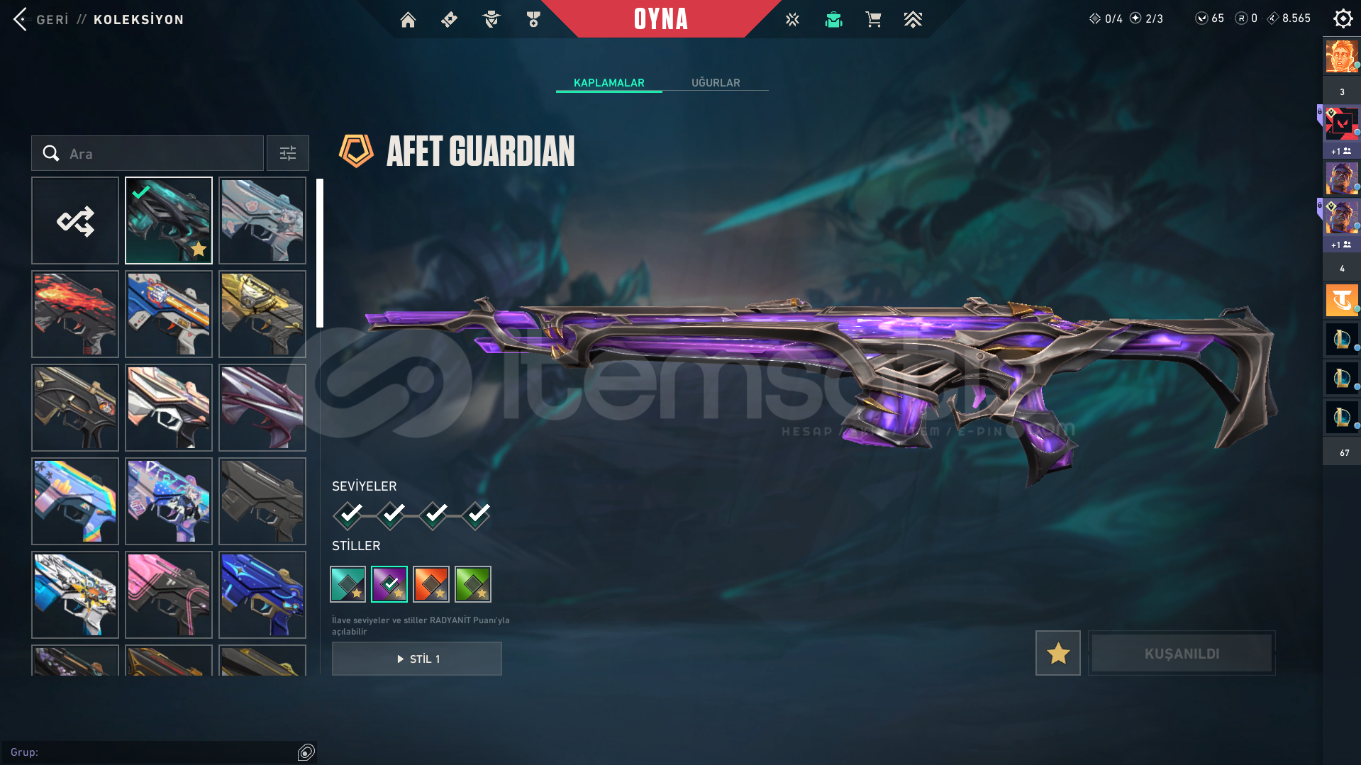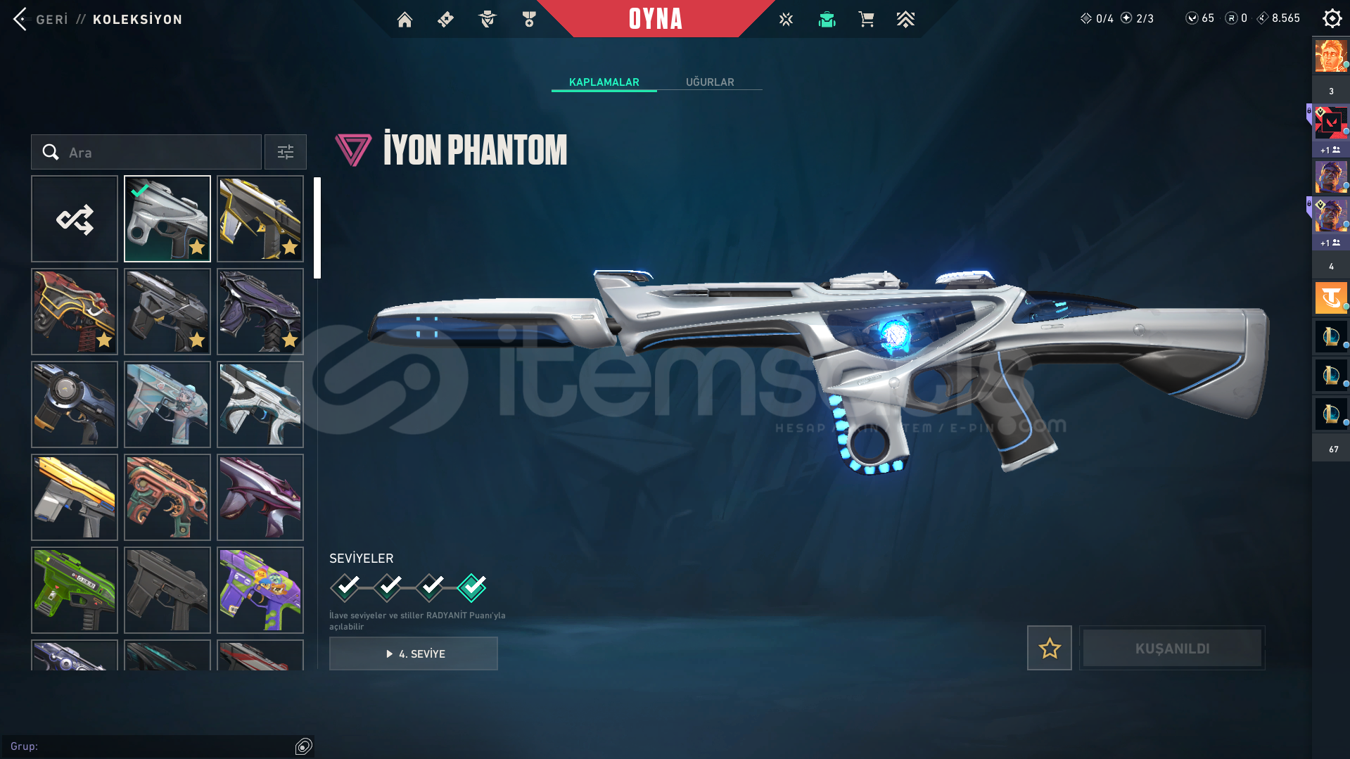 extra olarak gaia ghost asil classic vardır onları koyamadım buraya baya bi bp skini de vardır.