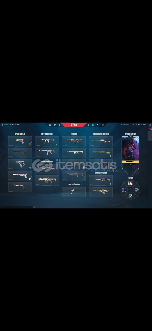 23bin TL yatırımlıSheriff: ışık muhafızı,singularity,kuronamiClassic vctGhost evoriShorty kaosFrenzy iyonStinger fatihSpectre iyonJudge fatihBulldog: protokolGuardian fatihPhantom: özel harekat,blastx,champ 22,fatihVandal: kaos,asıl,maymun,ejderin buyruğu,evori,gaia,iyonBıçak: iyonkarambit,kaos balta,oni kılıç,ve saldırı (bıçağı animasyonlu olan)Marshall:fatihOutlaw: rgxOp: yağ...