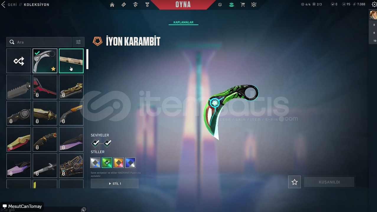 hesapta iyon karambit faz vandal ve 2 bp alınmıştır plat 1