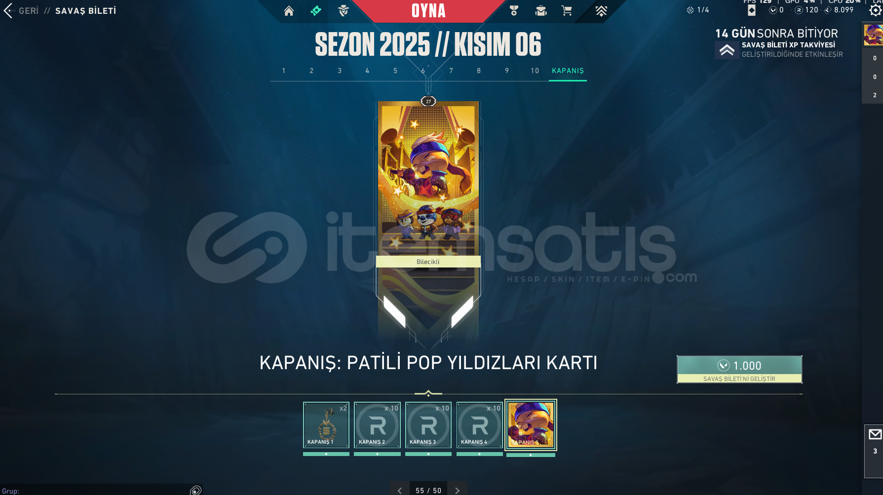 Pass 55 level olup satın alınmamıstır dilerseniz satın alıp skinlere sahip olabılırsınız