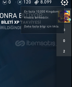 Hesapta 120 Radyanit kingdom 8.099 kredisi mevcuttur .
