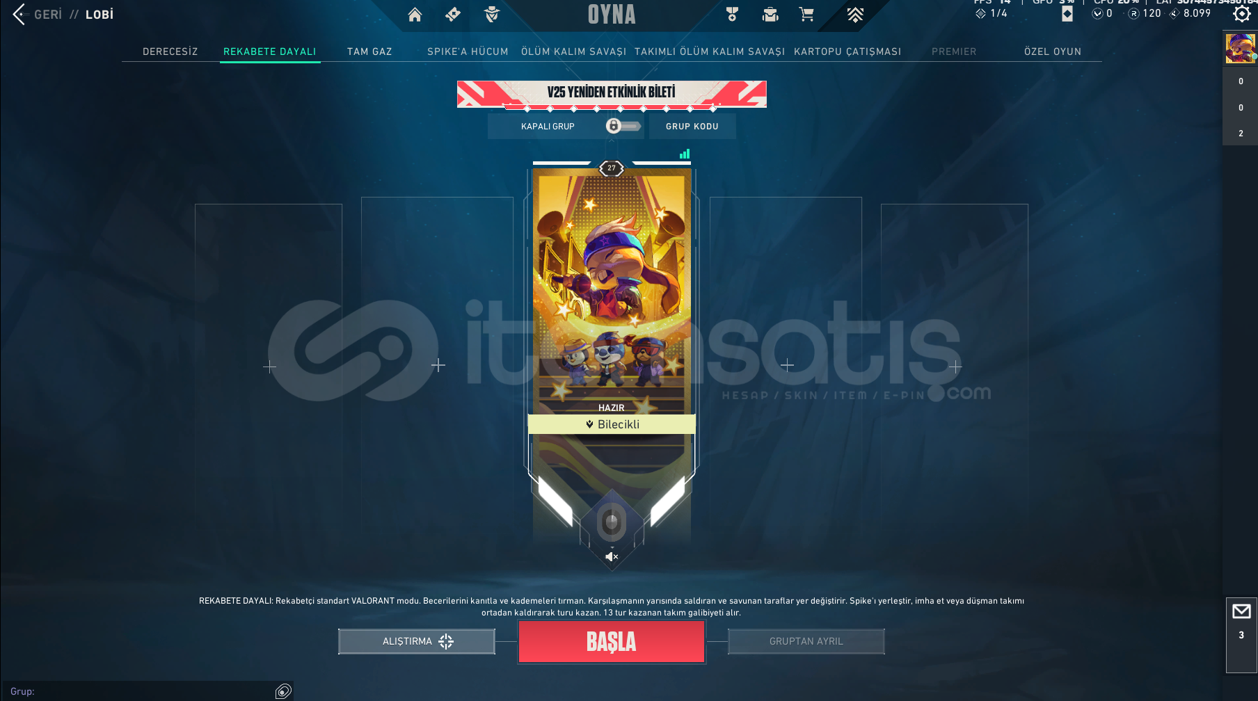 Hesap 27 levedir.30 Ocak 2026 günü oyun ici kullanıcı ismi değiştirilebilir.ACIK OLAN BUTUN AJANLAR İLAN GORSELLERİNDE MEVCUTTUR.Hesap demir 1 0 kpdir.Bedelsiz ajan sembolu hakkı mevcut değildir.Hesapta 120 Radyanit kingdom 8.099 kredisi mevcuttur .1 tane kalp durduran ghost skini vardır renkleri acılmamıstır.Pass 55 level olup satın alınmamıstır dilerseniz satın alıp skinlere sahip olabıl...