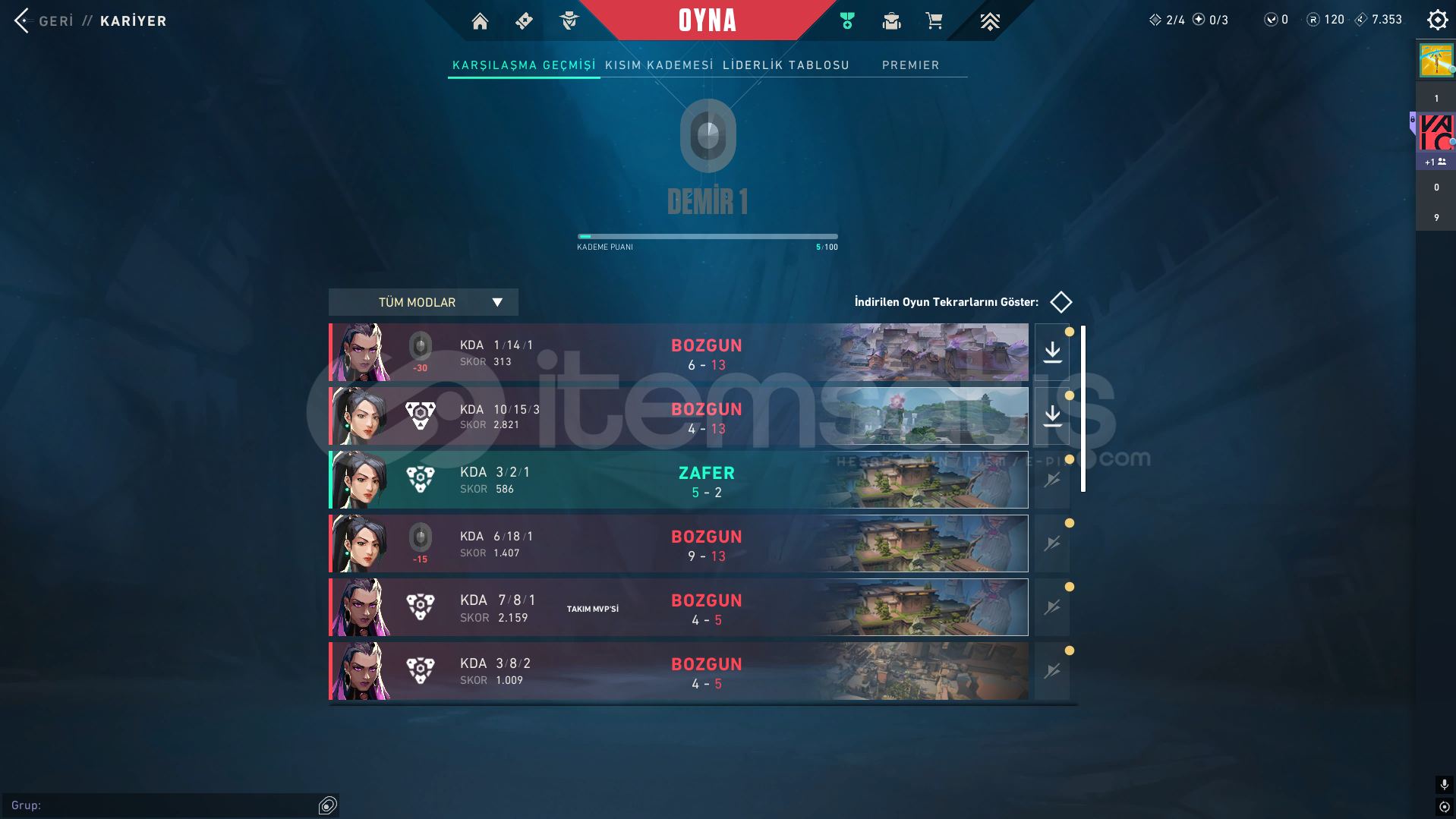 ⭐DEMİR 1 0 KP TR KURULUM DÜŞÜK MMR ⭐İLANINA HOŞ GELDİNİZ