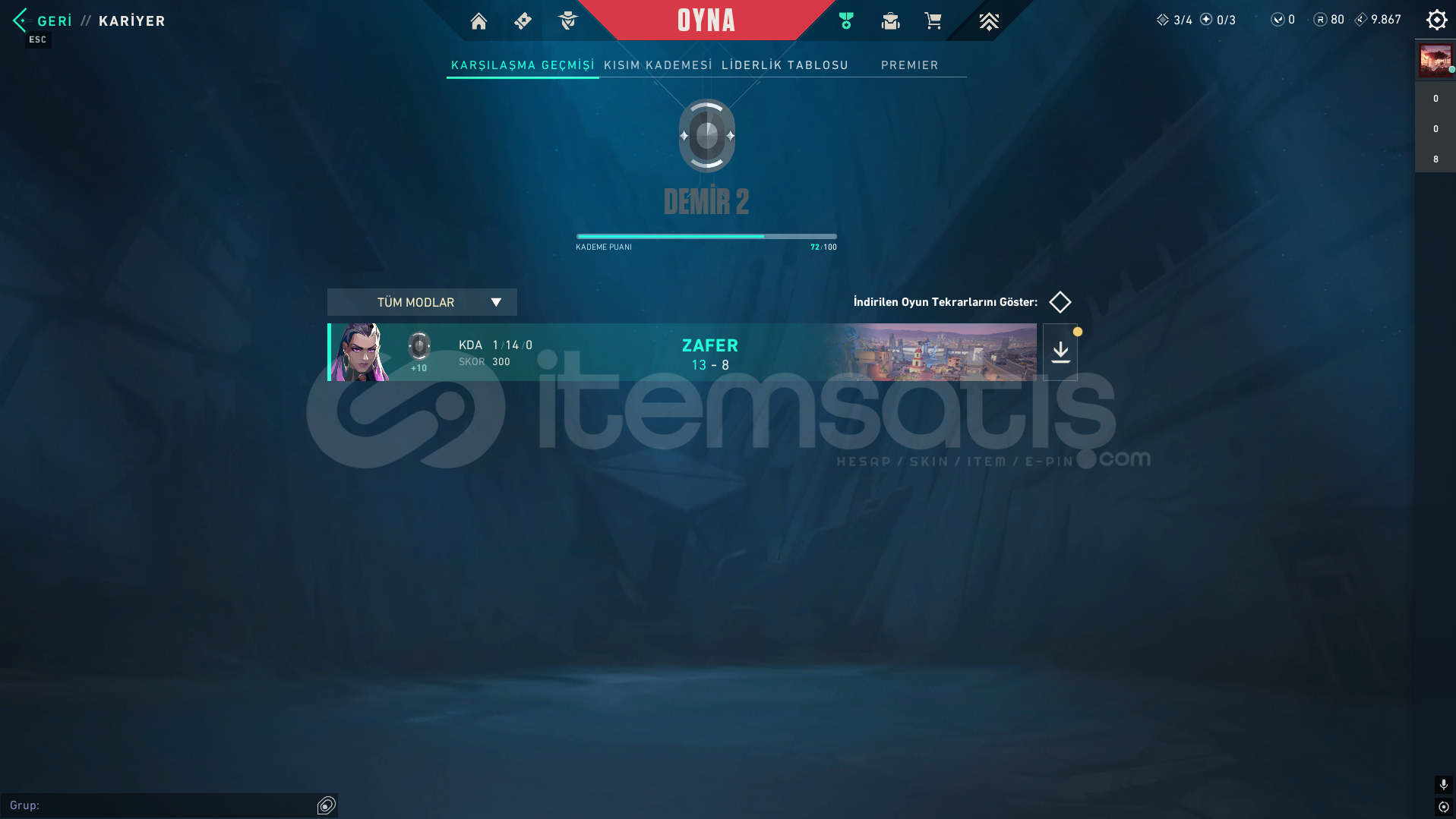 ⭐DEMİR 2 72 KP TR KURULUM DÜŞÜK MMR ⭐İLANINA HOŞ GELDİNİZ