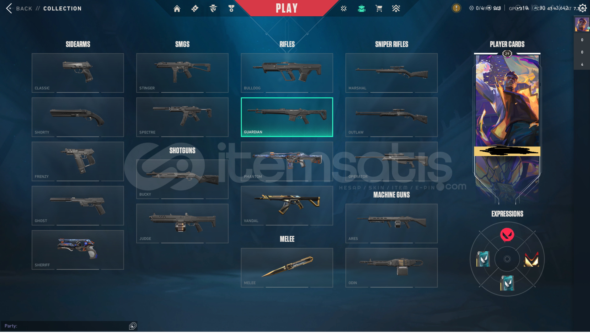 Hesap 29 lvl dia 3 olup yüksek mmr bir hesaptır hesabımızda 1 adet Kaos sherrif 1 adet kaos phantom ve Champions 2025 seti bulunmaktadır.