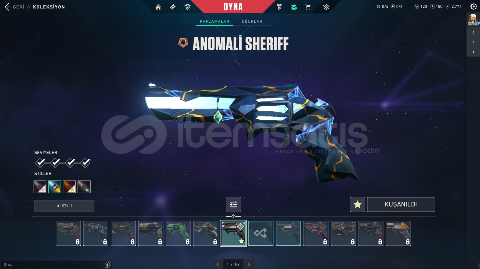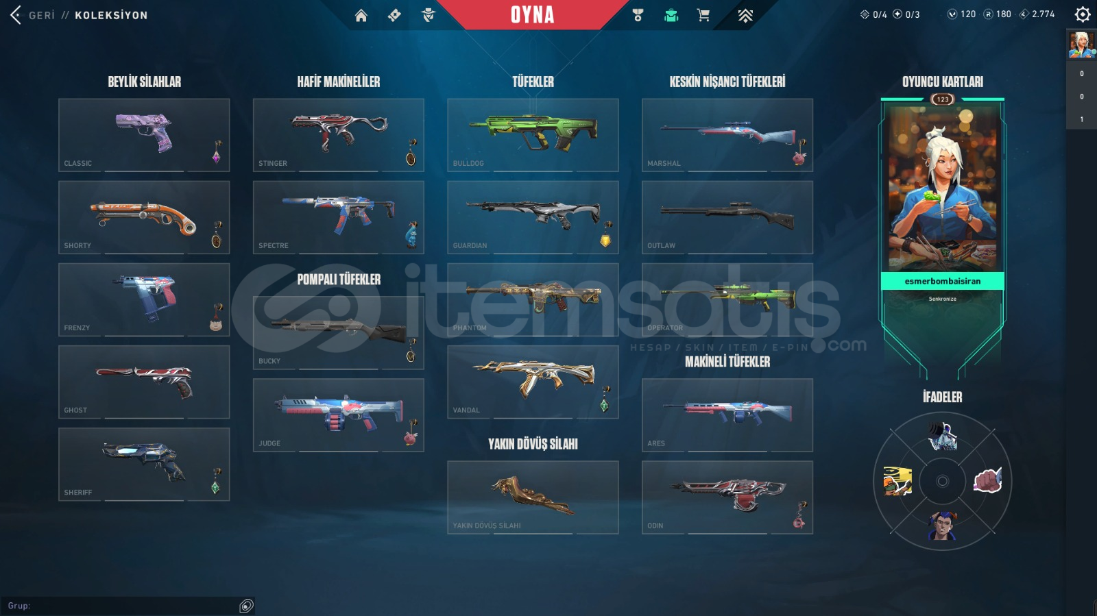 HESAP YÜCE OLMUŞTUR ŞUAN DİA 1 Yitik VandalEjder Vandal Oni PhantomGümüş Avcısı VandalAnomali SherifSemavi Yelpaze 1 TANE BATTLE PASS ACMIŞTIR 1 TANE DAHA BIÇ VAR!!PAZARLIK VARDIR!!