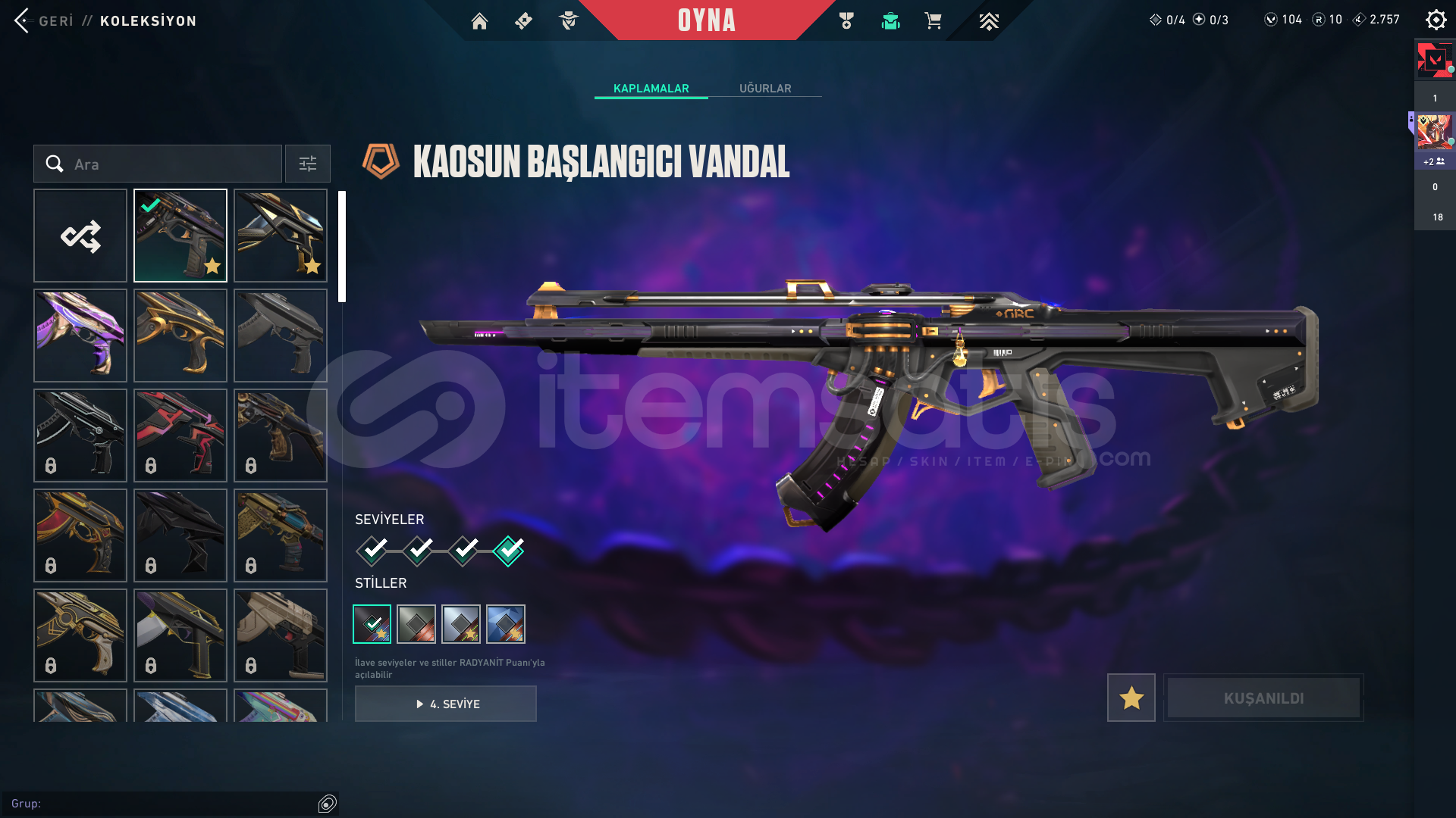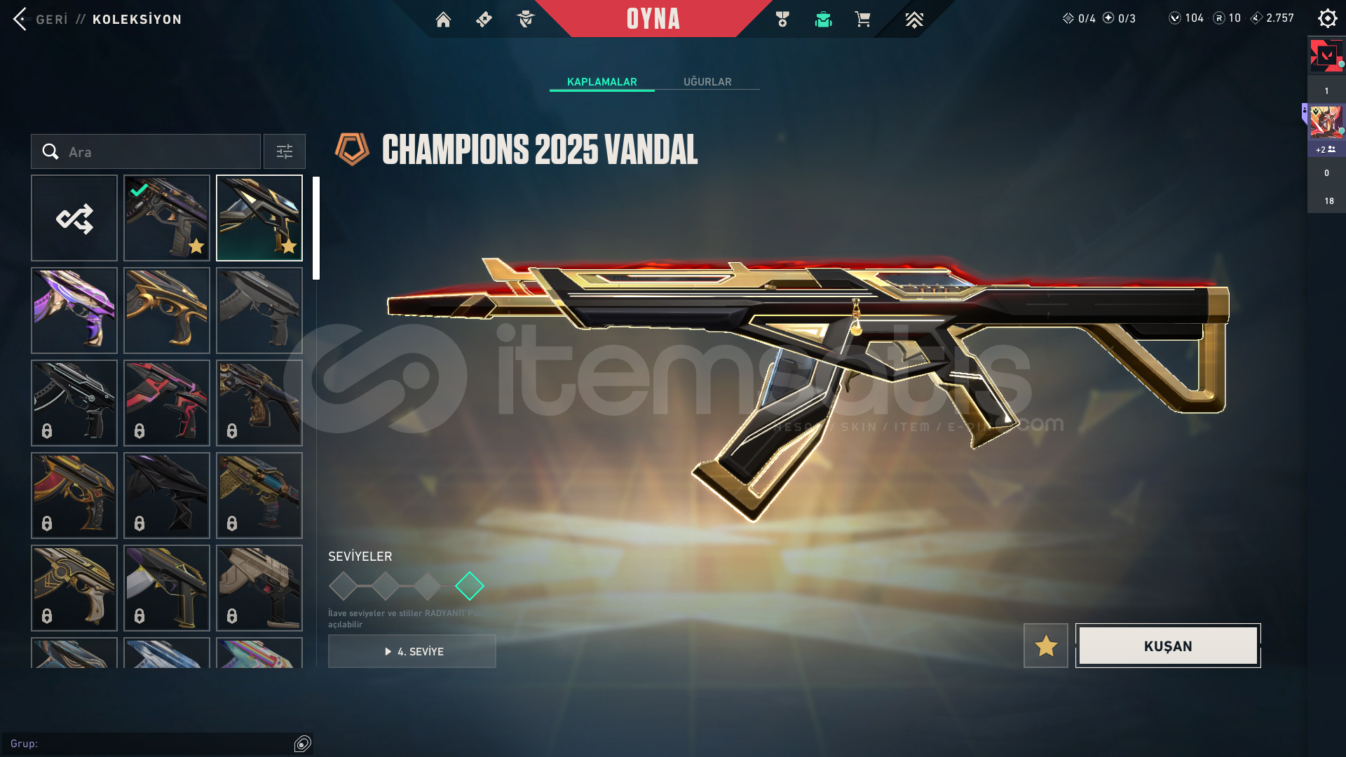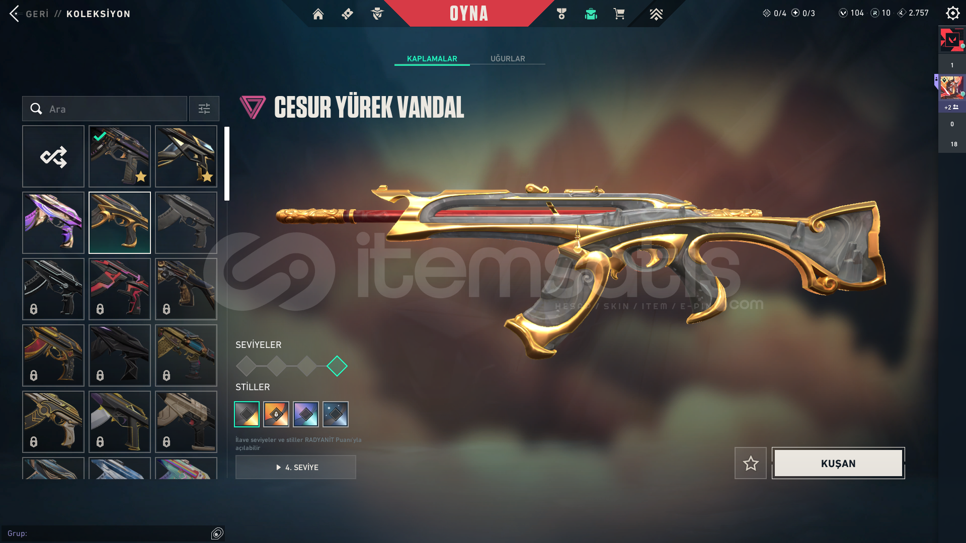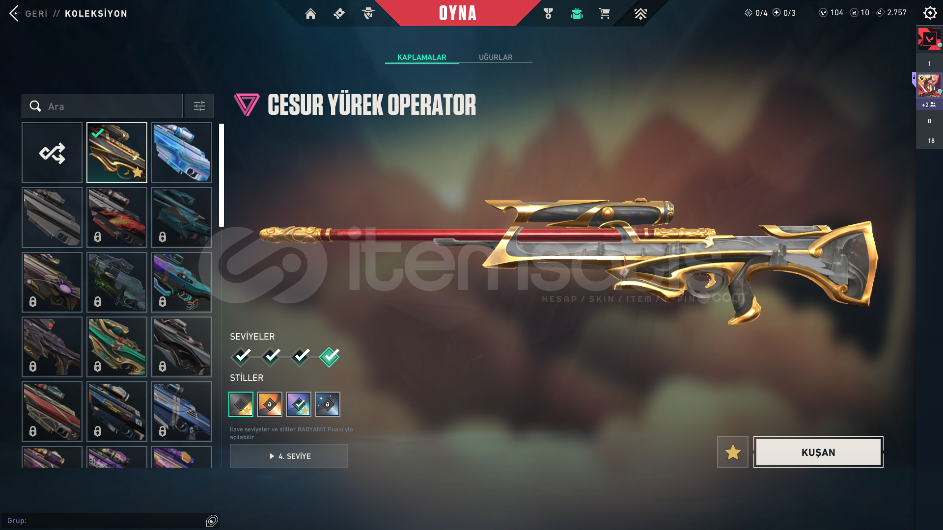 hesap içnidkeilervandal-kaos-champ 25-cesur yürekoperator-cesur yürekbıçak-asil karambit 2.01 tane bp full şuanki bp yarısındaaralık 30da isim dğeişim hakkı gelicekoyunu bıraktım o yüzden satıyorum