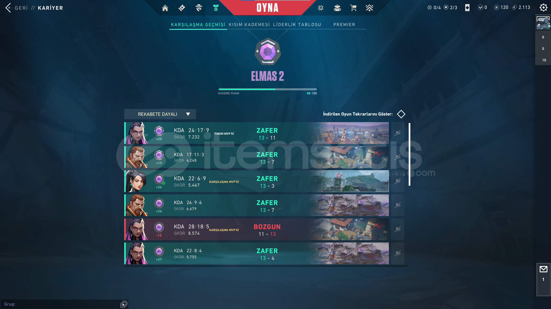 diamond 2 58 kp hesap smurflük yüksek mmr hesap son 20 maçın 9 u mvp