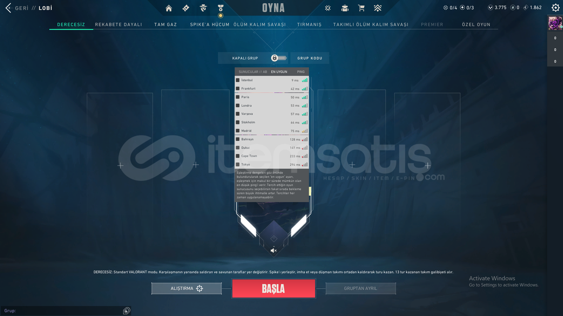 Hesap TR bölgesinde kuruludur ve mağaza para birimi TL'dir, İstanbul sunucusuna giriş yapılabilmektedir!