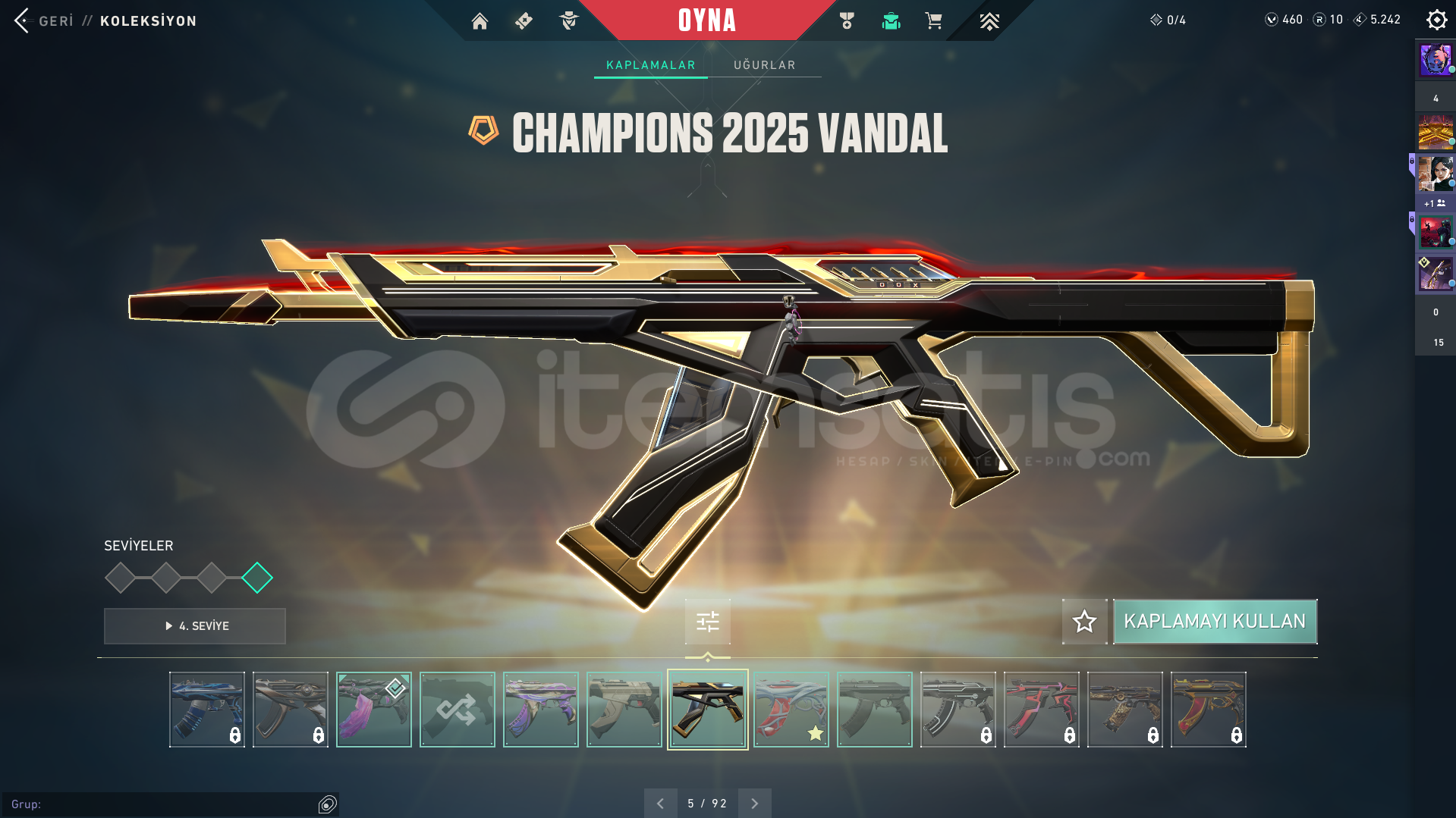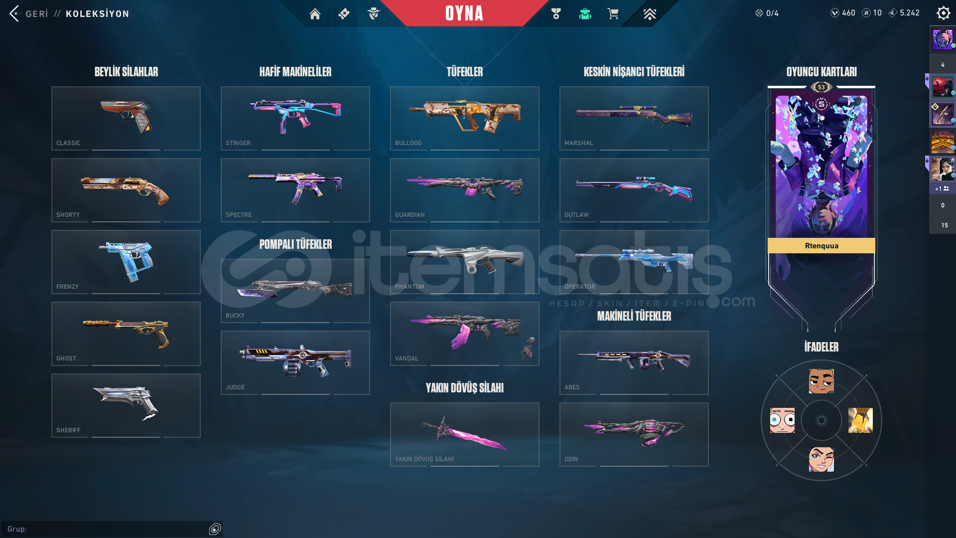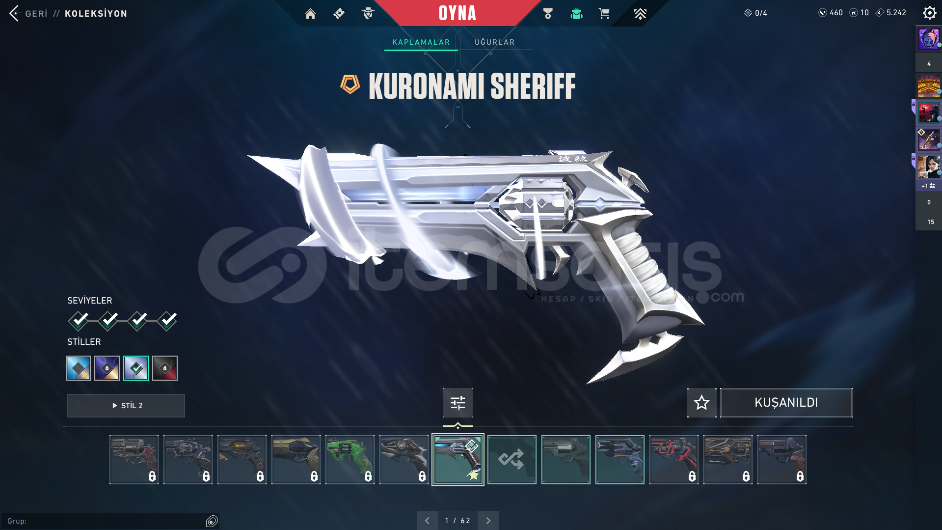Valorant skinli E-Postalı hesaptırDOLMİR VANDAL GUARDİAN ODİN CLASSİC CHAMPİONS 2025 VANDAL GAİA VANDAL İYON PHANTOM SERİ TETİK MARSHAL AEMONDIR BUCKY KURANOMİ SHERİFF CESUR YÜREK GHOST ASİL CLASSİC BULUNAN HESAPTIR.Rank: GOLD 1Sunucu: TRMağaza: TRMailli hesaptır bilgileri size devredilmektedir, mevcut bilgileri kendi bilgileriniz ile değiştirebilirsiniz.Ürünler fotoğraftakiler ile ...