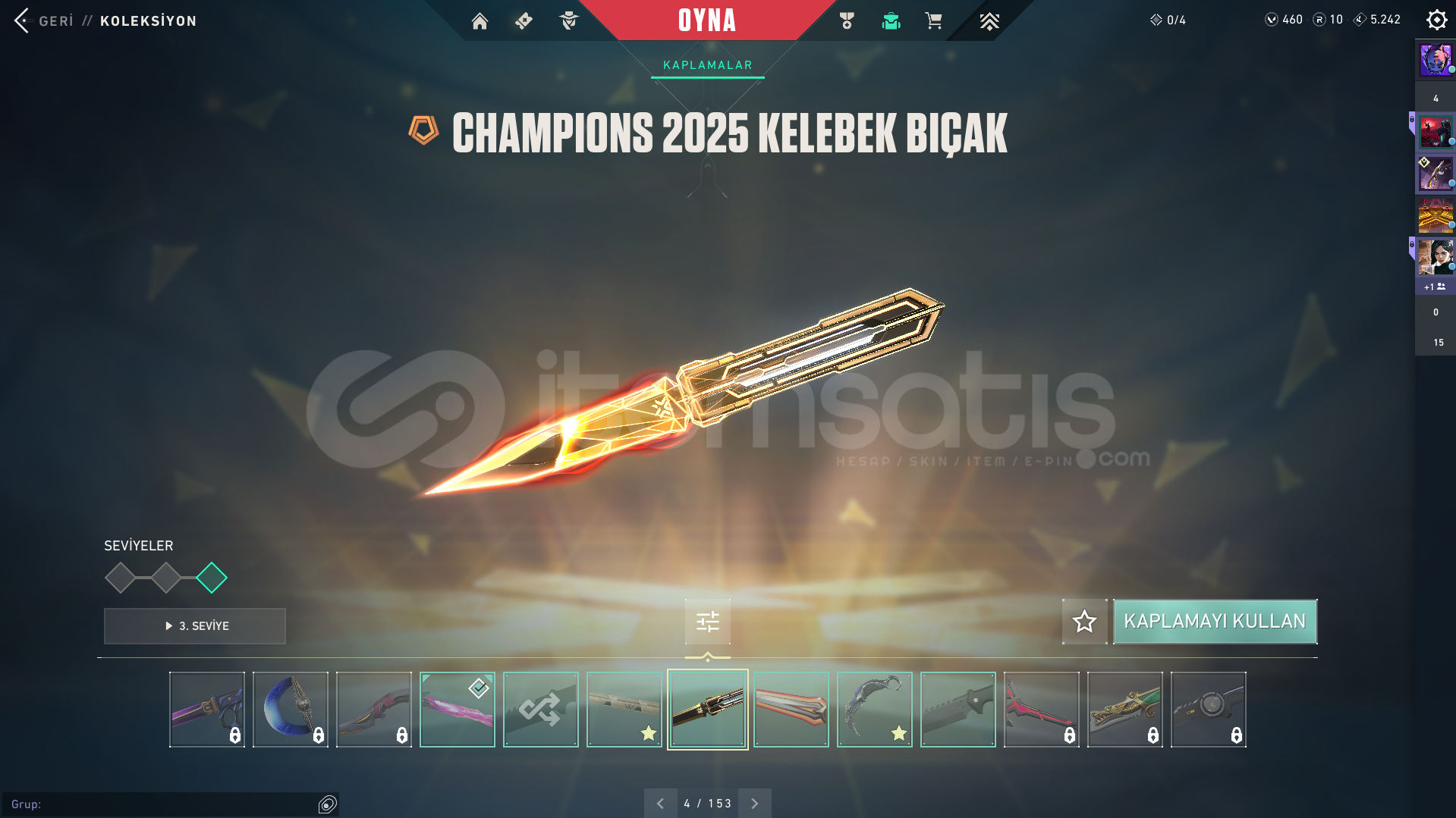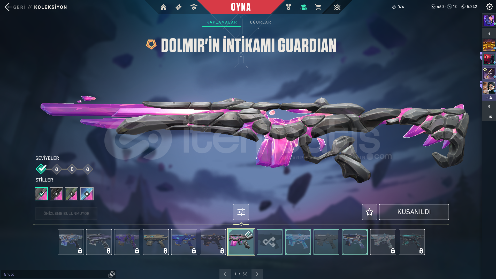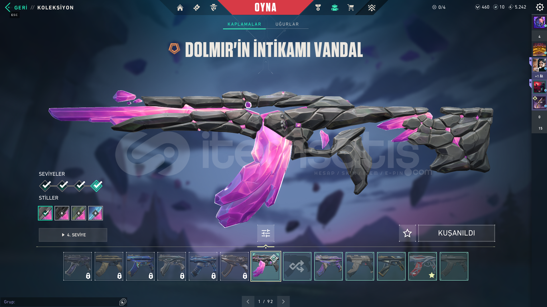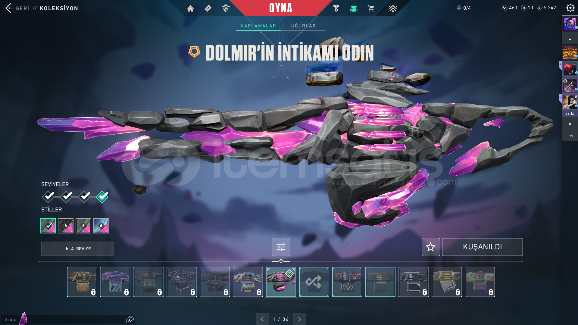 Valorant skinli E-Postalı hesaptırDOLMİR VANDAL GUARDİAN ODİN CLASSİC CHAMPİONS 2025 VANDAL GAİA VANDAL İYON PHANTOM SERİ TETİK MARSHAL AEMONDIR BUCKY KURANOMİ SHERİFF CESUR YÜREK GHOST ASİL CLASSİC BULUNAN HESAPTIR.Rank: GOLD 1Sunucu: TRMağaza: TRMailli hesaptır bilgileri size devredilmektedir, mevcut bilgileri kendi bilgileriniz ile değiştirebilirsiniz.Ürünler fotoğraftakiler ile ...