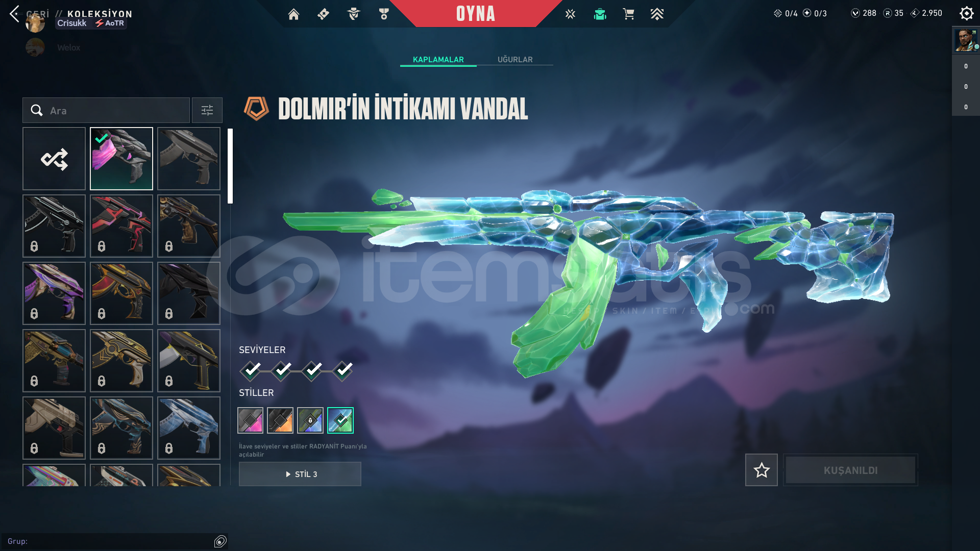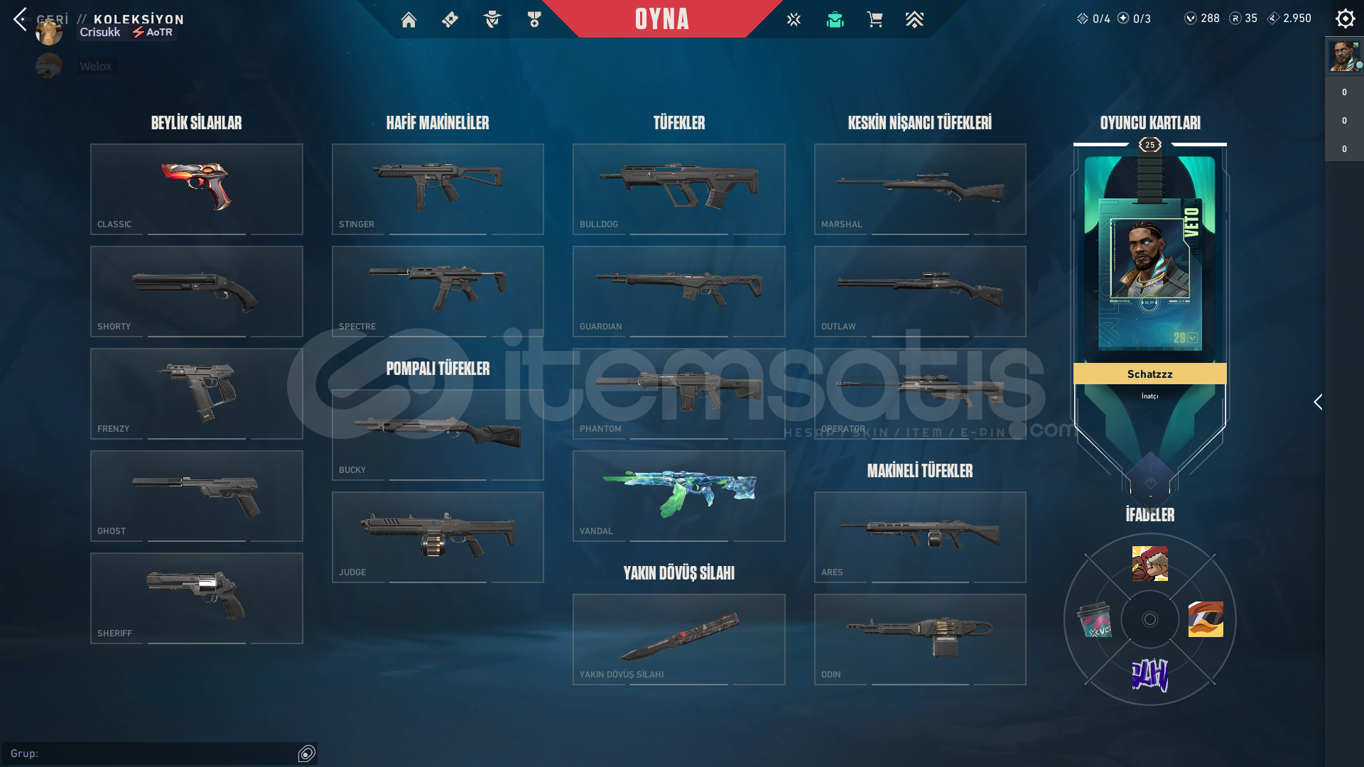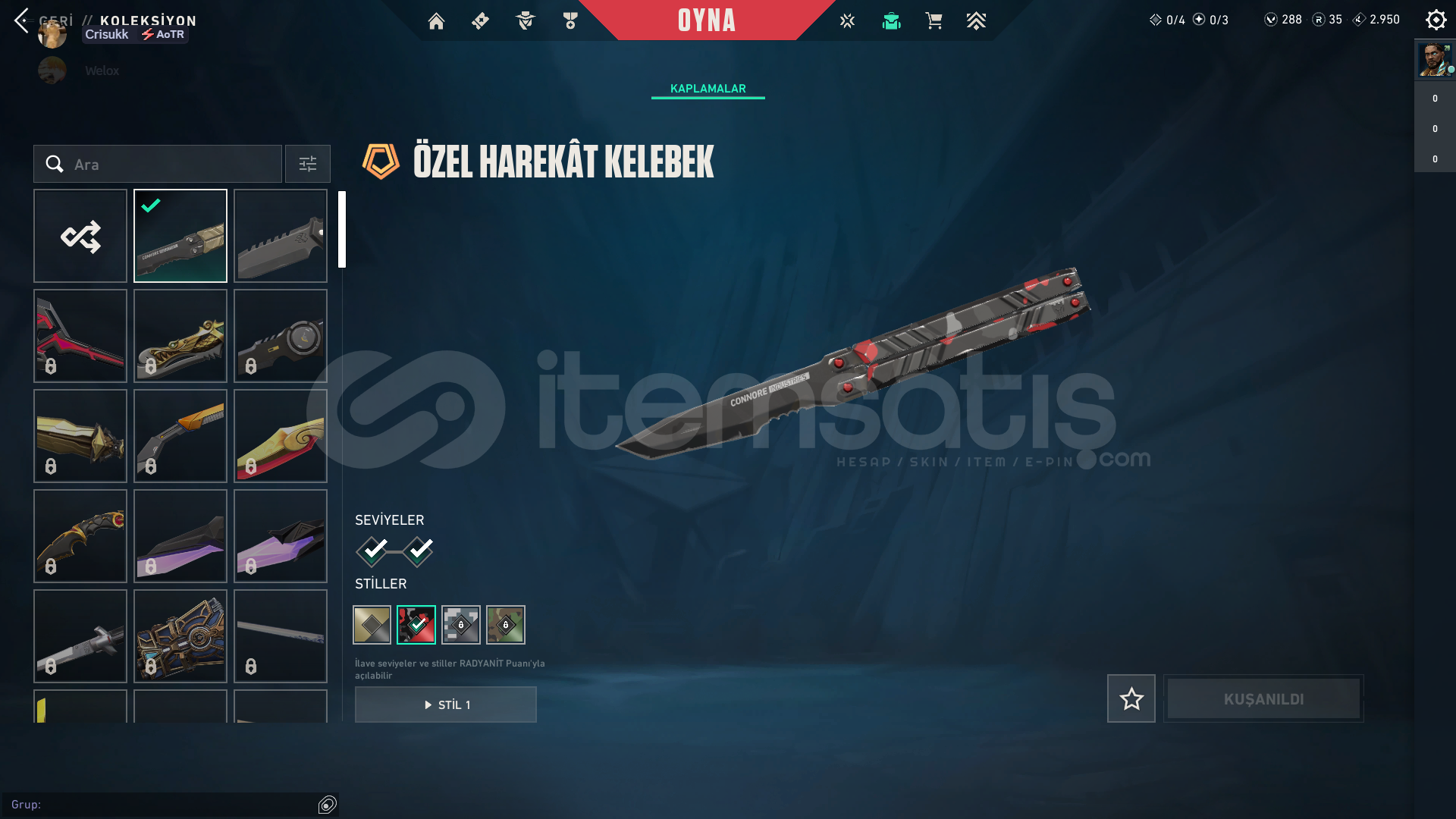 💠 Dolminir Vandal – Koleksiyonda dursa bile karizma, elde tutunca bambaşka. Animasyonlarıyla, duruşuyla oyuna ciddiyet katan bir skin. 🗡️ Özel Harekât Kelebek – Bıçak kategorisinin en yakışıklılarından biri. Animasyonu ve hissiyle oyunda “ben buradayım” dedirten türden.Toplamı 6 bin vp (valorant puanı) Toplamları 1650 Türk Lirası ve fazlası alan ki...